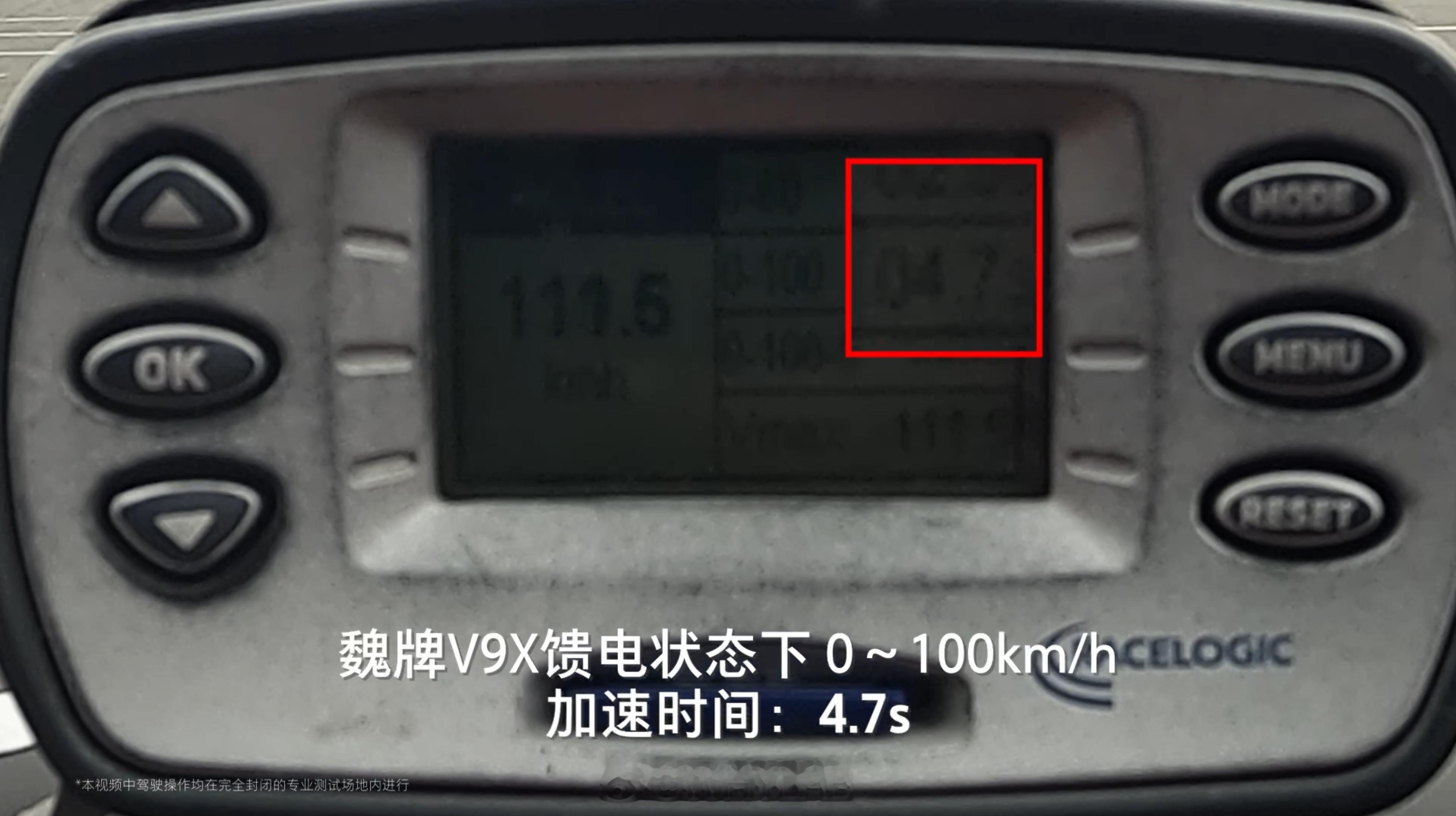 魏牌V9X 用上了一套 2.0T 超级 Hi4 系统,峰值功率 175kW,动力有足够的冗余,馈电状态下也有不错的表现。在徐水工厂,魏牌 V9X 零百加速测试馈电性能 (实测 4.7s) 完全不输满电性能 (实测 4.6s),并且在馈电满载状态下成功爬上 60% 坡度的测试坡道, 即使在 8% 的极限馈电状态依旧稳定输出极速 233km/h,这个表现,面对复杂情况也能从从容容,这才能被称之为六座豪华旗舰。