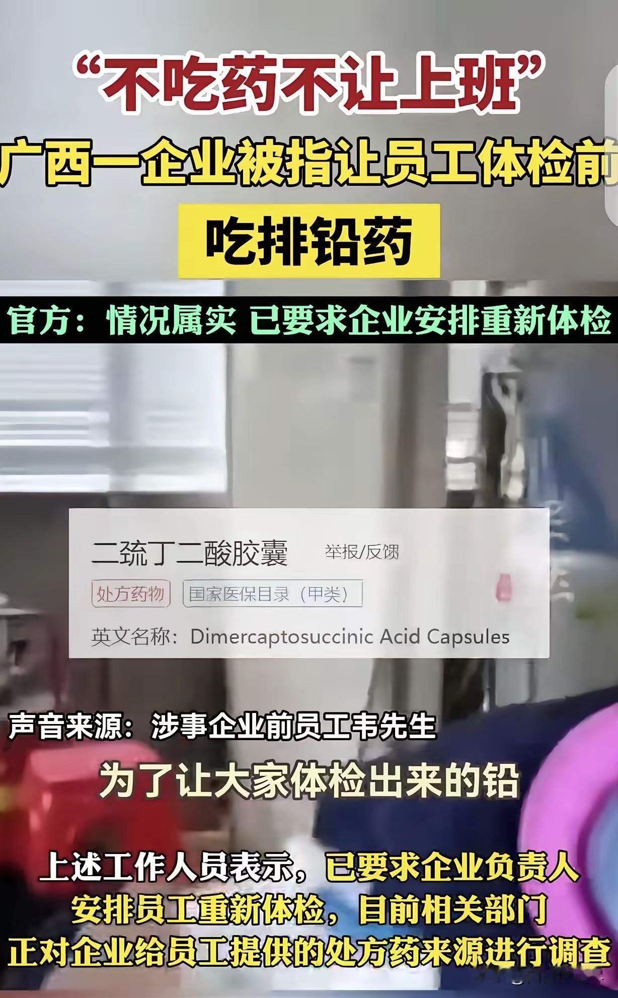“有命挣钱没命花!”广西河池,一男子在蓄电池厂上班,每次健康体检前,他就被工厂要求提前1-2个月吃排铅药,就为了让体检出来的铅不超标,不吃不让他上班,吓得男子立马辞了职,命比挣钱重要。