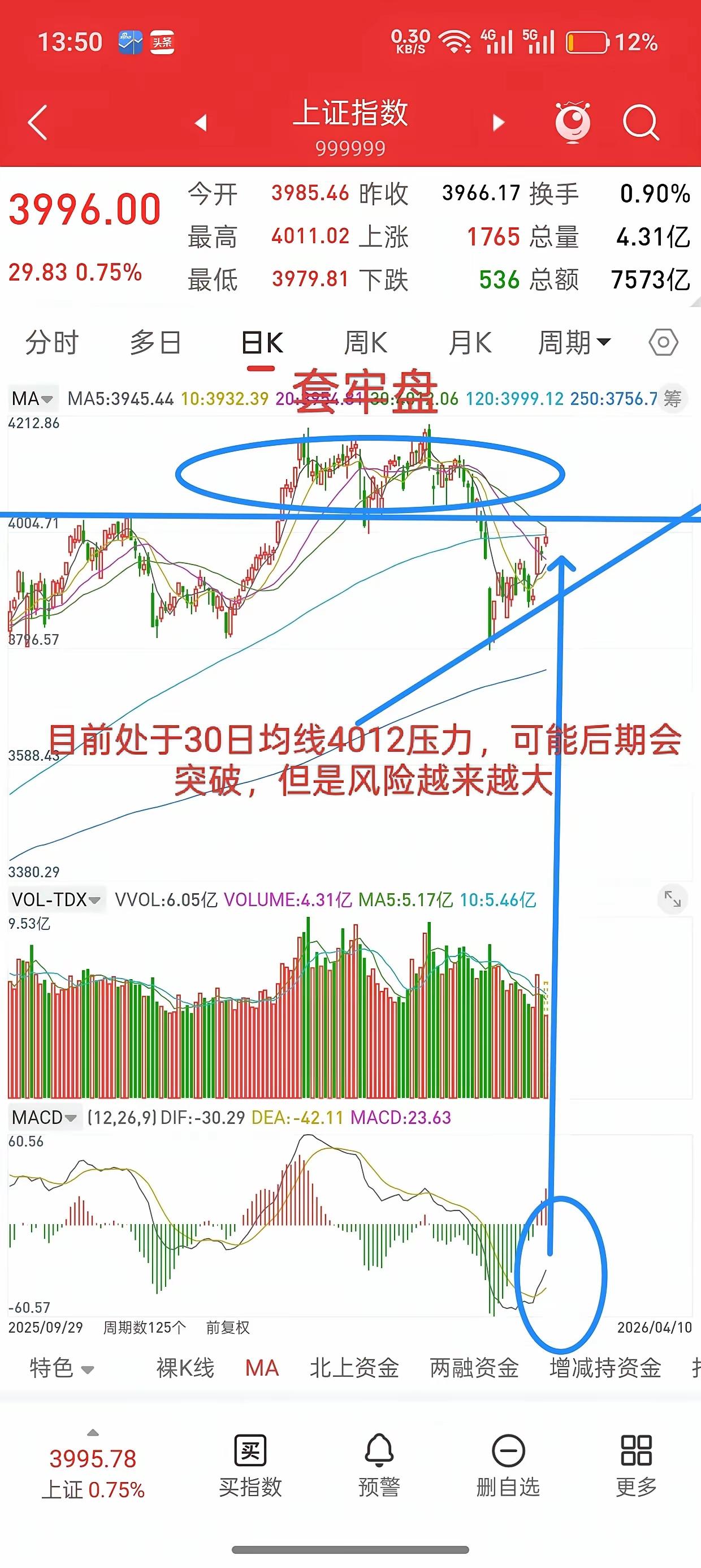 再看现在,大盘在4000点附近晃悠,30日均线正好压在4012,就差那么一丢丢。下周一要是真冲过去,估计又有一堆技术派喊“突破压力位,加仓干”,但我反倒觉得这时候得攥紧钱包——2021年那波就是突破后才开始跌的,越多人觉得“稳了”,越容易出幺蛾子。
