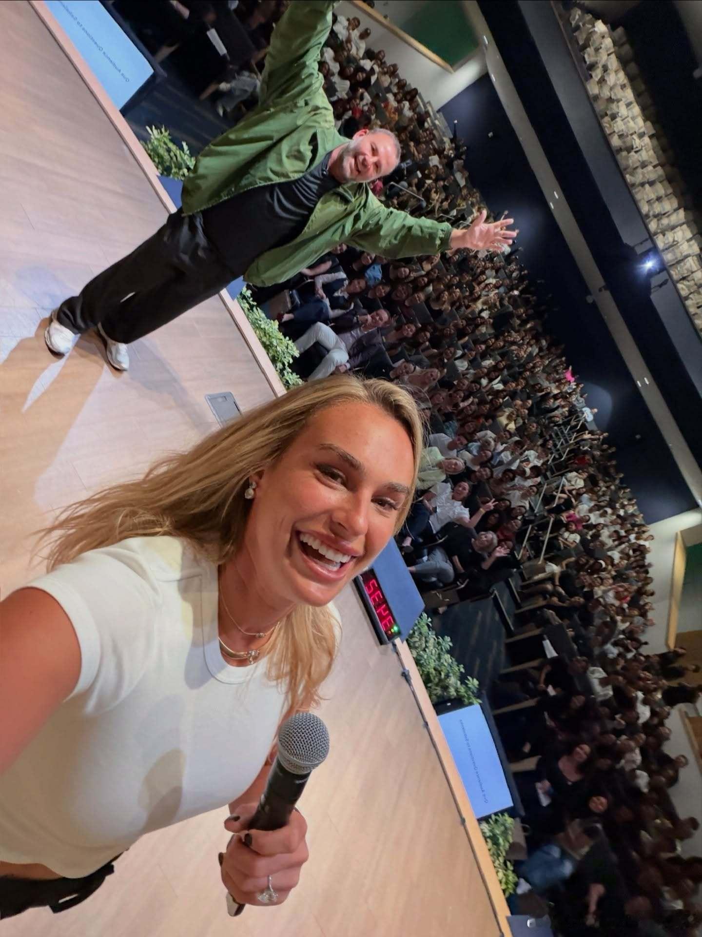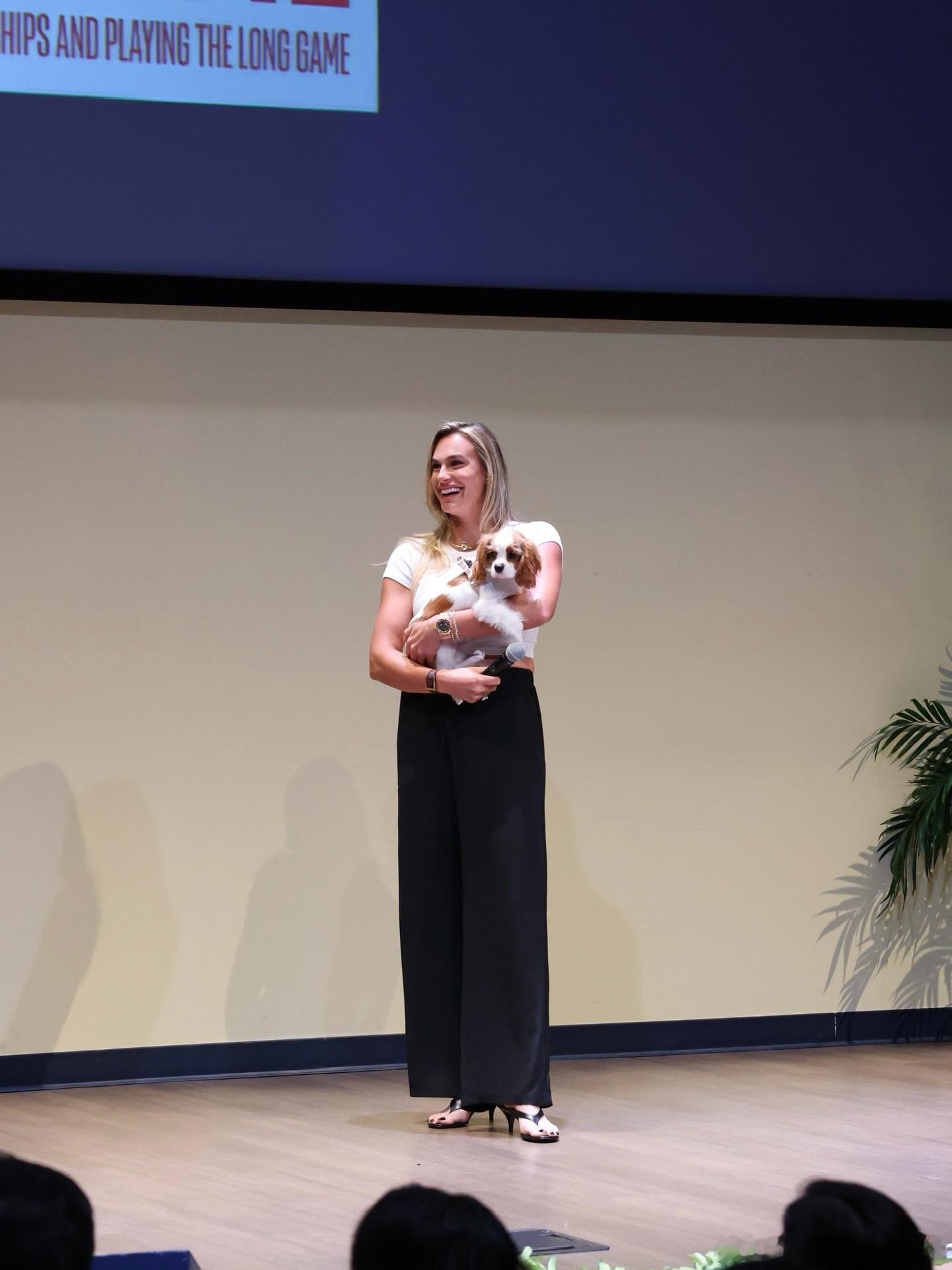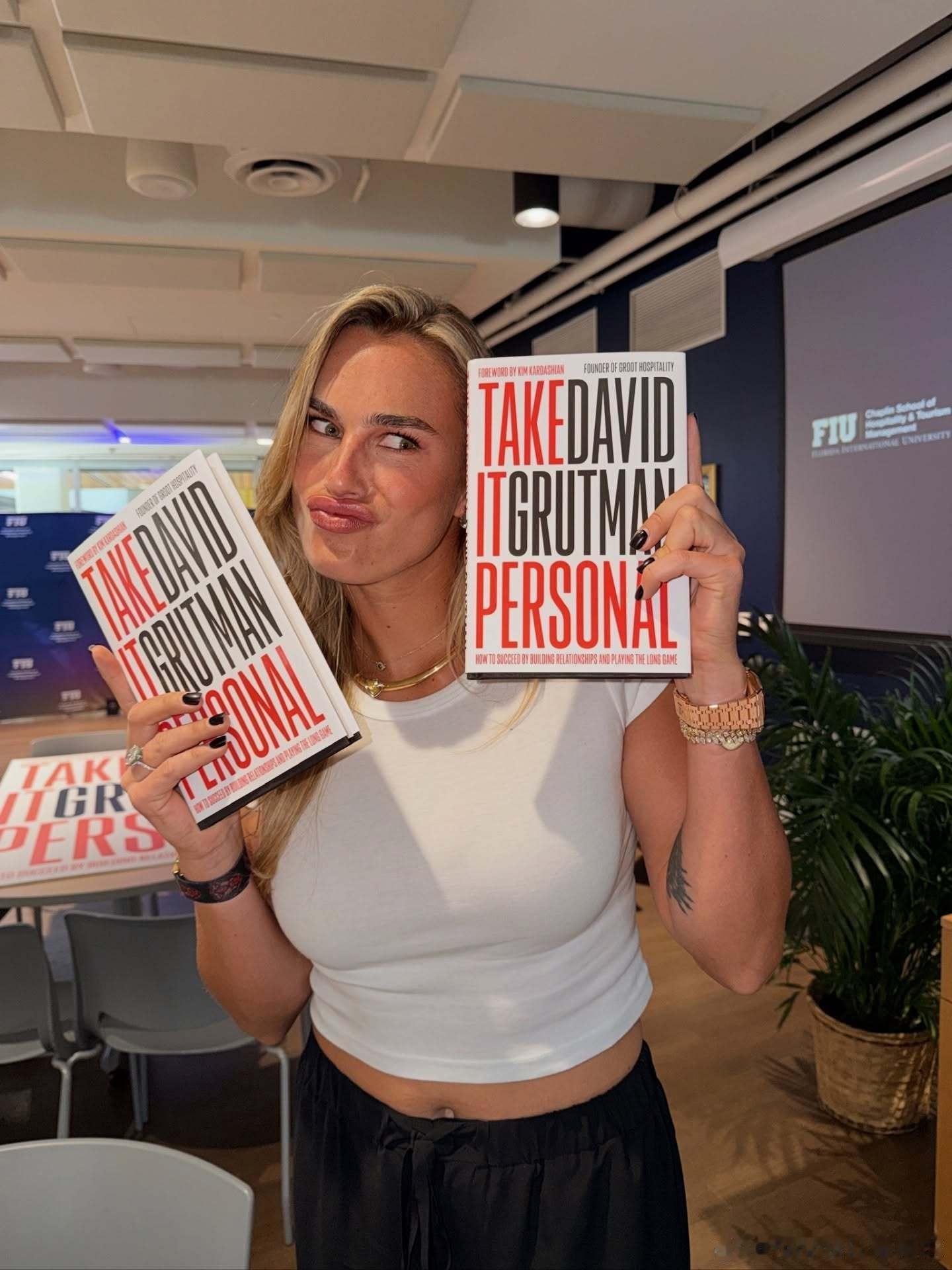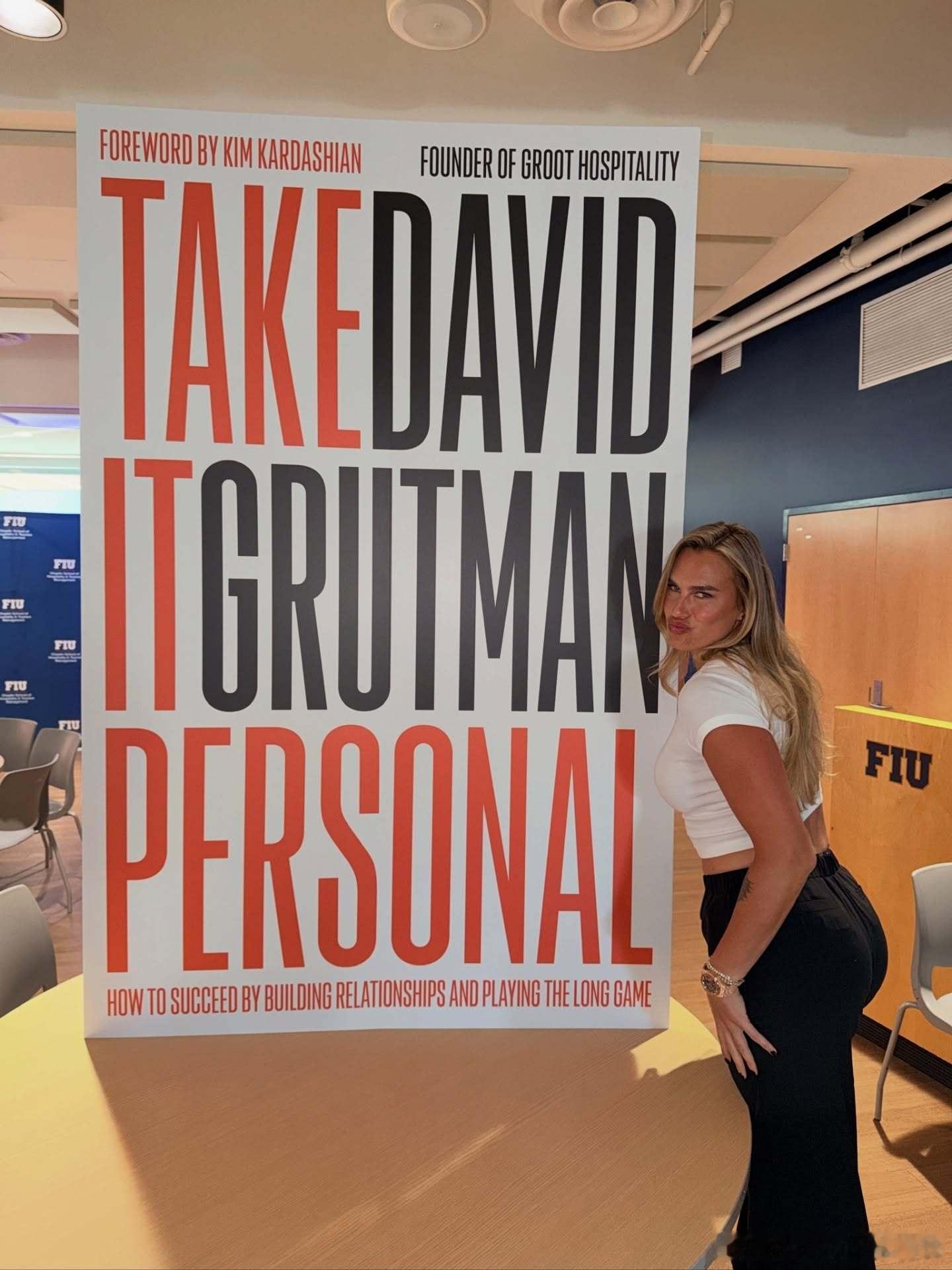 虎妞ig发文:“原来上大学是这种感觉呀,太开心的一天啦!在佛罗里达国际大学为大卫•格鲁特曼 的新书庆祝”