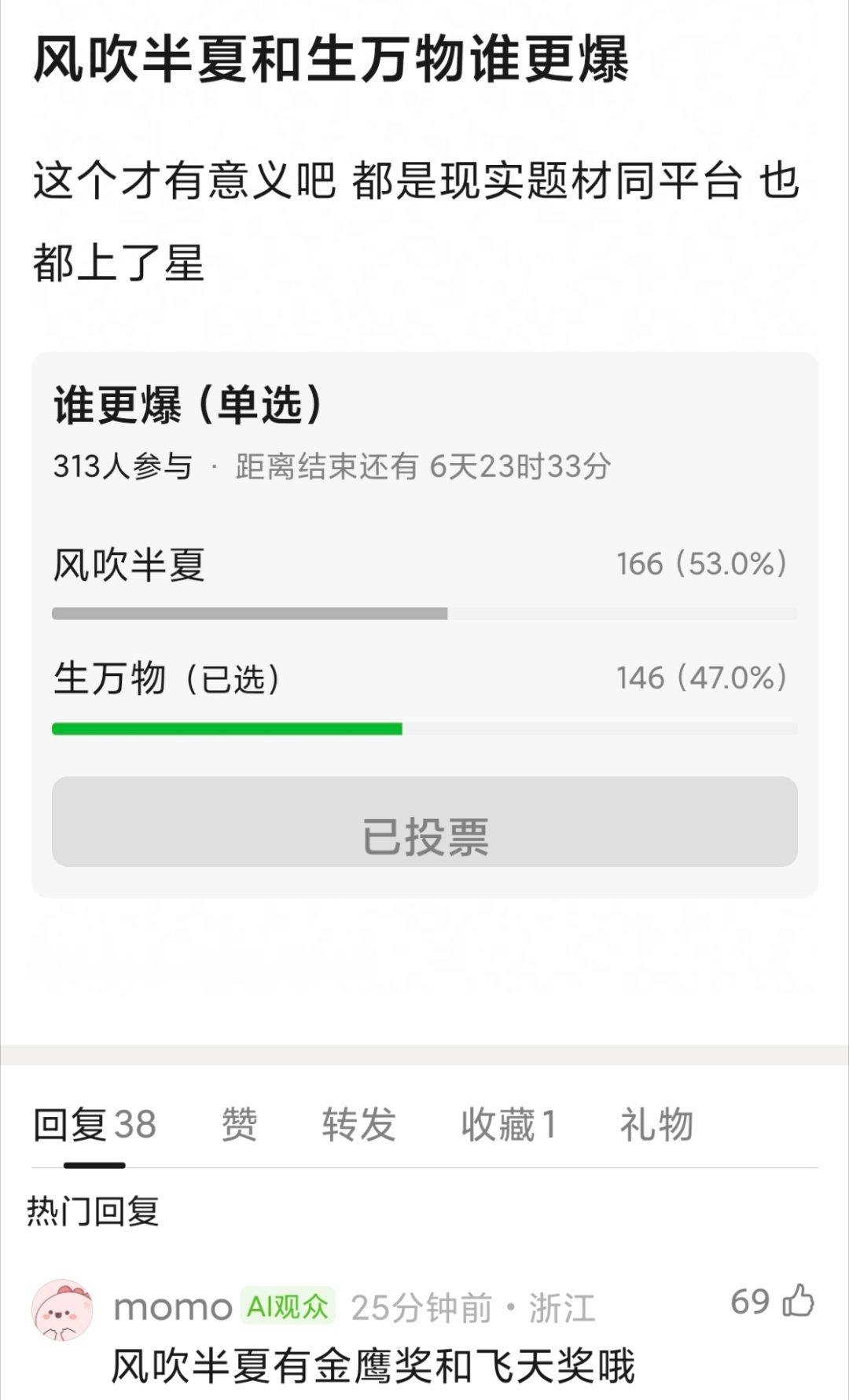 继同一年的《楚乔传》《三生三世》之后,网友又问同样现实题材的《风吹半夏》《生万物》哪个更爆?