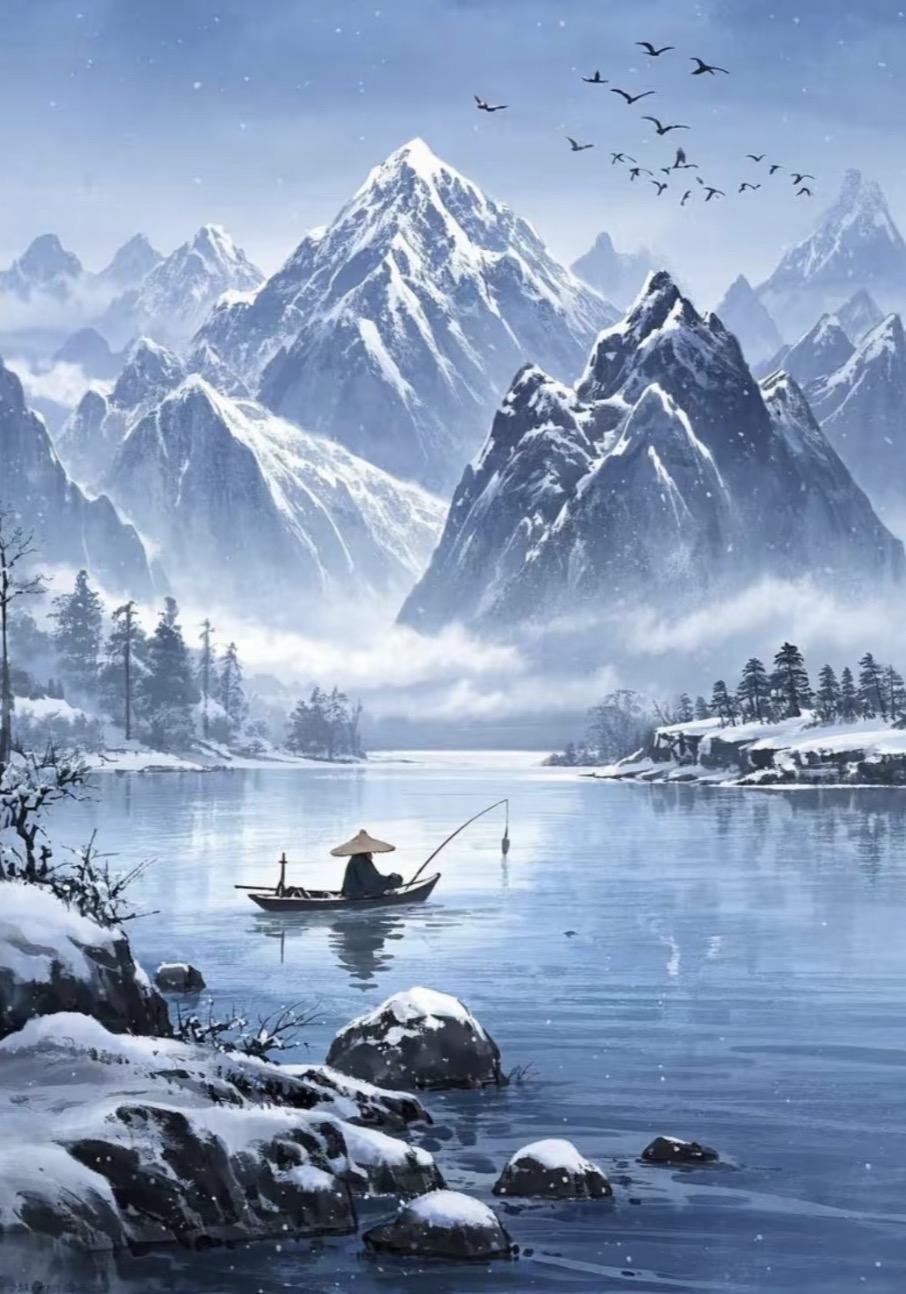 上联:雪落北国一片白 下联:舟横野渡半江寒
