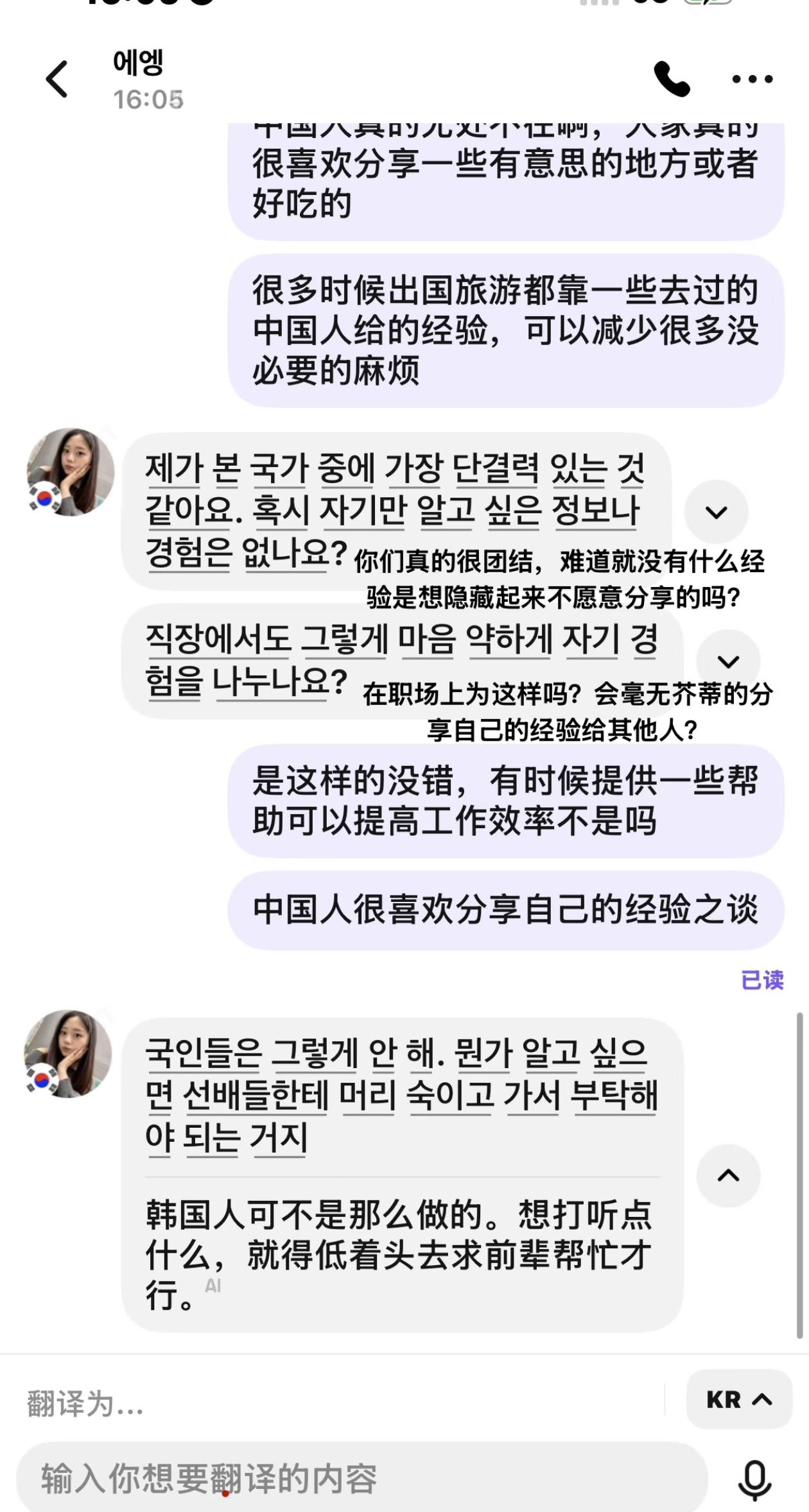 韩国人说我们很乐意分析信息。感觉中国人最愿意分享的是便宜货链接吧!