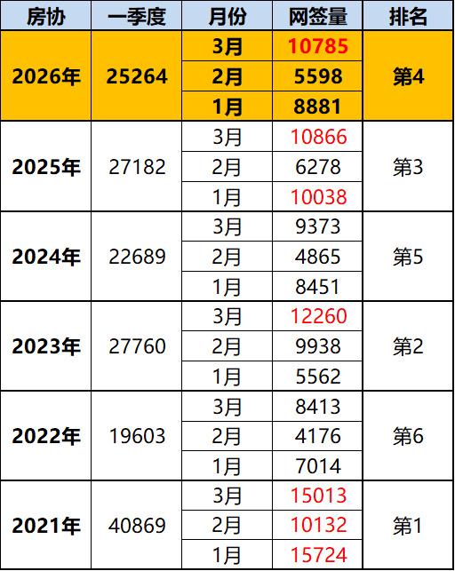 ——2026年一季度 25264套,仅排第4