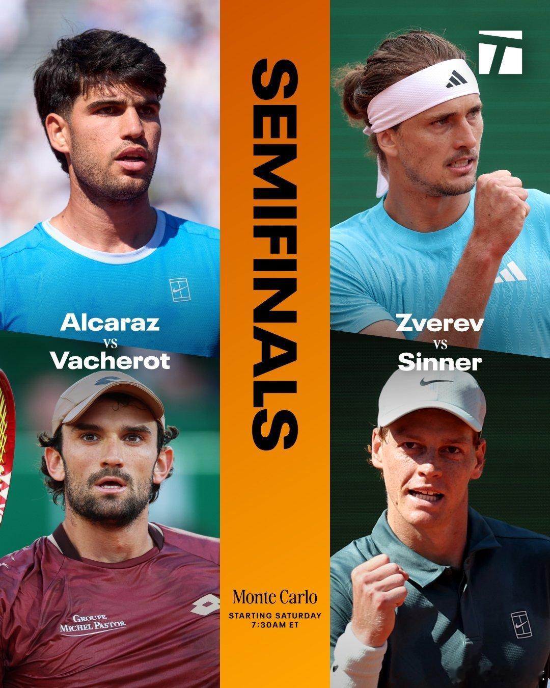 蒙特卡洛大师赛四强产生表弟瓦舍罗创造历史,他以6-4/3-6/6-3击败德米纳尔,成为历史上首位晋级半决赛的东道主摩纳哥球员。他将首次挑战世界第一。半决赛对阵预告:19:30,🇮🇹辛纳vs兹维列夫🇩🇪21:30,🇪🇸阿卡拉斯vs瓦舍罗🇲🇨阿卡将面对本站最大的考验。他能过得了表弟这一关吗?如果他不敌表弟,辛纳击败紫薇,那么世界第一将易主。今晚时间比较友好,小伙伴们记得关注。ATP网坛风云瓦舍罗晋级蒙特卡洛四强