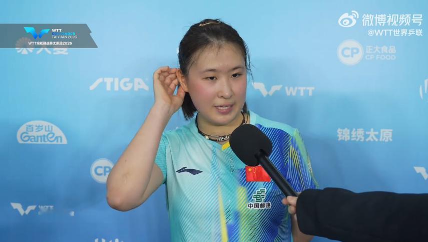 【太原挑战赛,女单1/8决赛,朱梓予3-1芝田沙季】赛后采访,朱梓予略带腼腆地说
