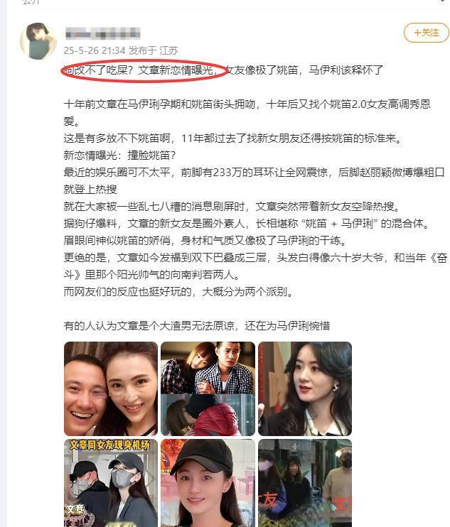 细看之下可以发现,文章的无名指上戴着戒指,而他与马伊琍离婚已经有七年,这期间曾传出与一位疑似姚笛的女性恋情,但之后被否定是姚笛本人,而是话剧演员凤莉。