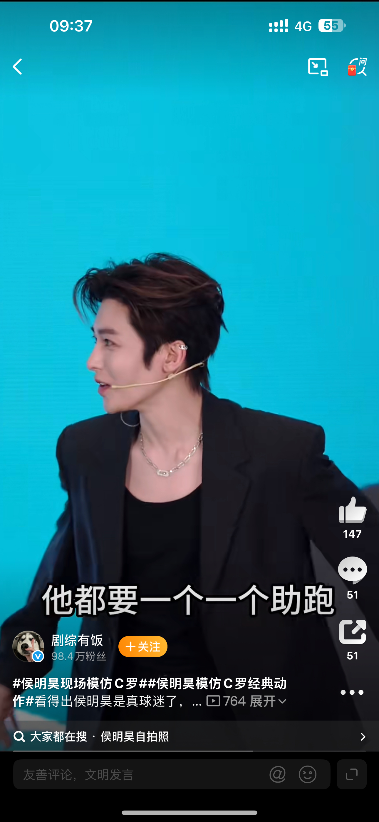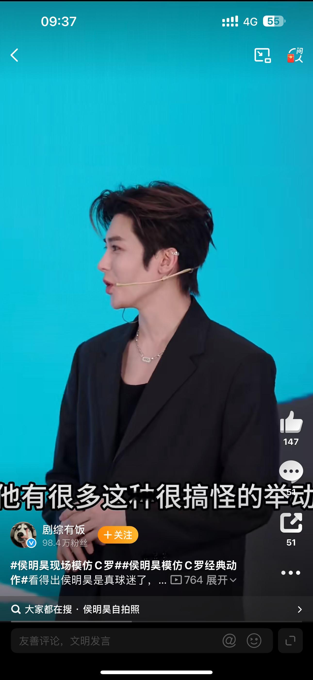 侯明昊分享看球装备侯明昊现场模仿C罗侯明昊看得出来很喜欢C罗了,真的挺不错的
