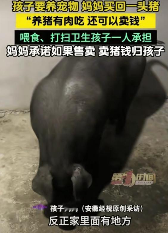 琢磨多日后,宝妈想到了两全其美的办法——给孩子买一头猪当宠物。