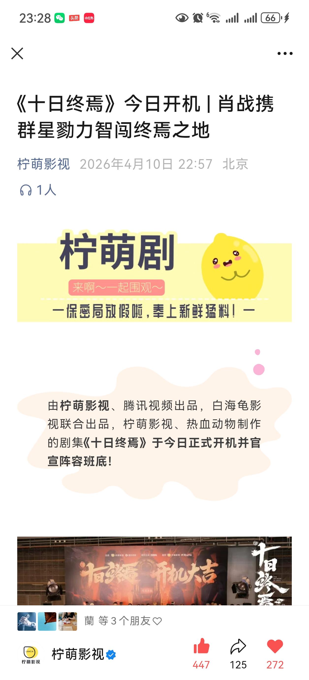 我闲暇时,会看一些小说打发时间,在十日终焉爆出肖战主演之前,其实我是不知道这部小说的,传出肖战主演之后,我才去看的,我的朋友们一般不看小说,这次十日终焉官宣肖战,前期也铺垫了很久,我朋友们也主动跟我说她们看到了相关消息,等播出的时候,她们也会去看[呲牙][呲牙][呲牙]