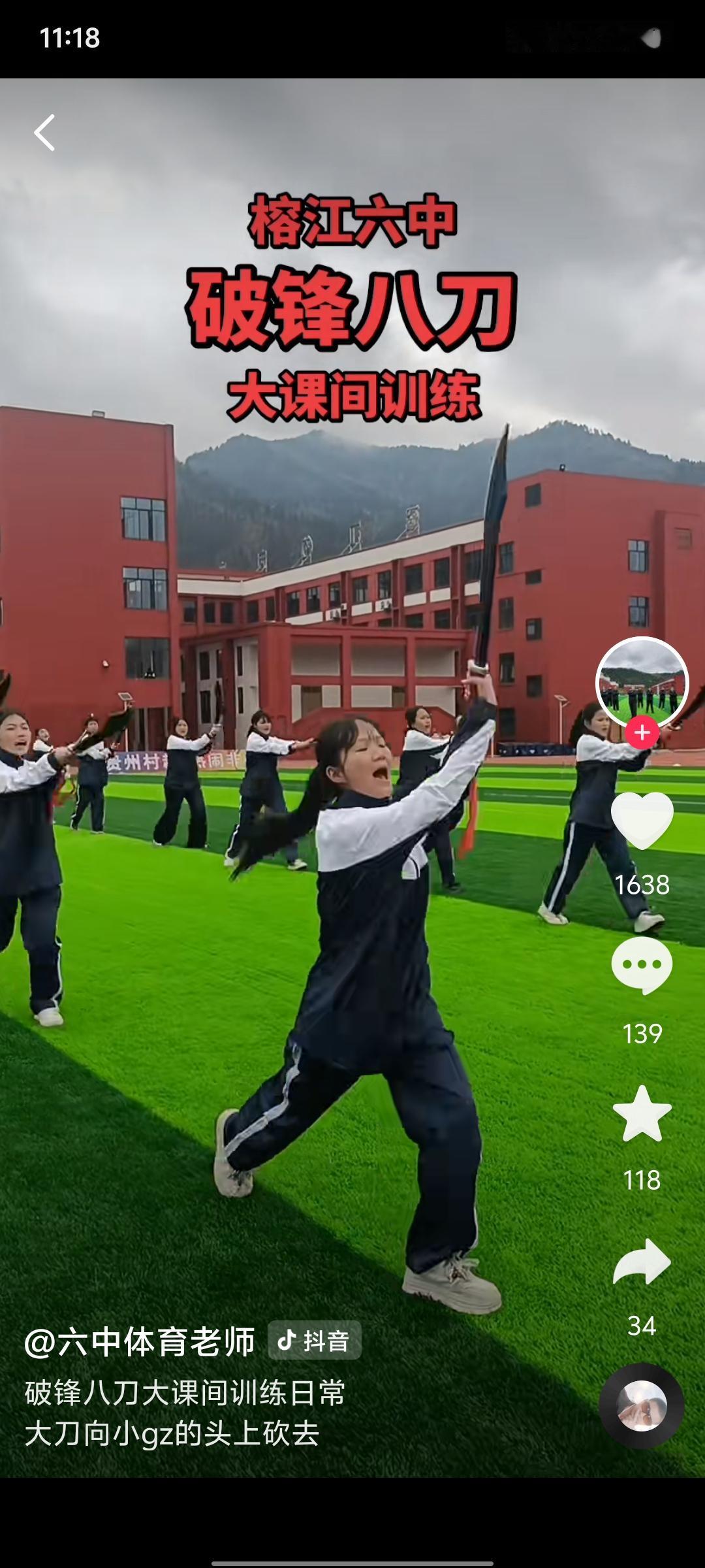 刷到贵州榕江六中课间操练破锋八刀的画面,瞬间被戳中了!操场上没有软绵绵的伸展运动,上千名少年手持训练刀,身姿挺拔,一招一式刚劲有力,刀光起落间,满是属于中国少年的精气神。
