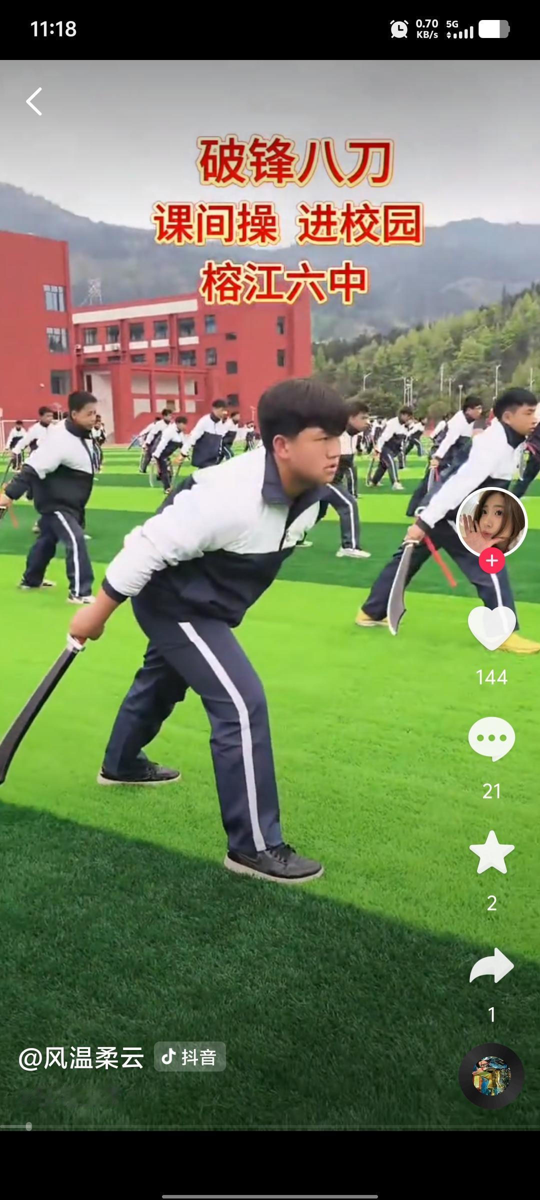 真心希望这样的课间操能被更多学校推广,让更多少年接过先辈的精神火炬,以热血铸脊梁,以少年之姿,守家国之安,让破锋八刀的刚劲与热血,永远在校园里传递下去。