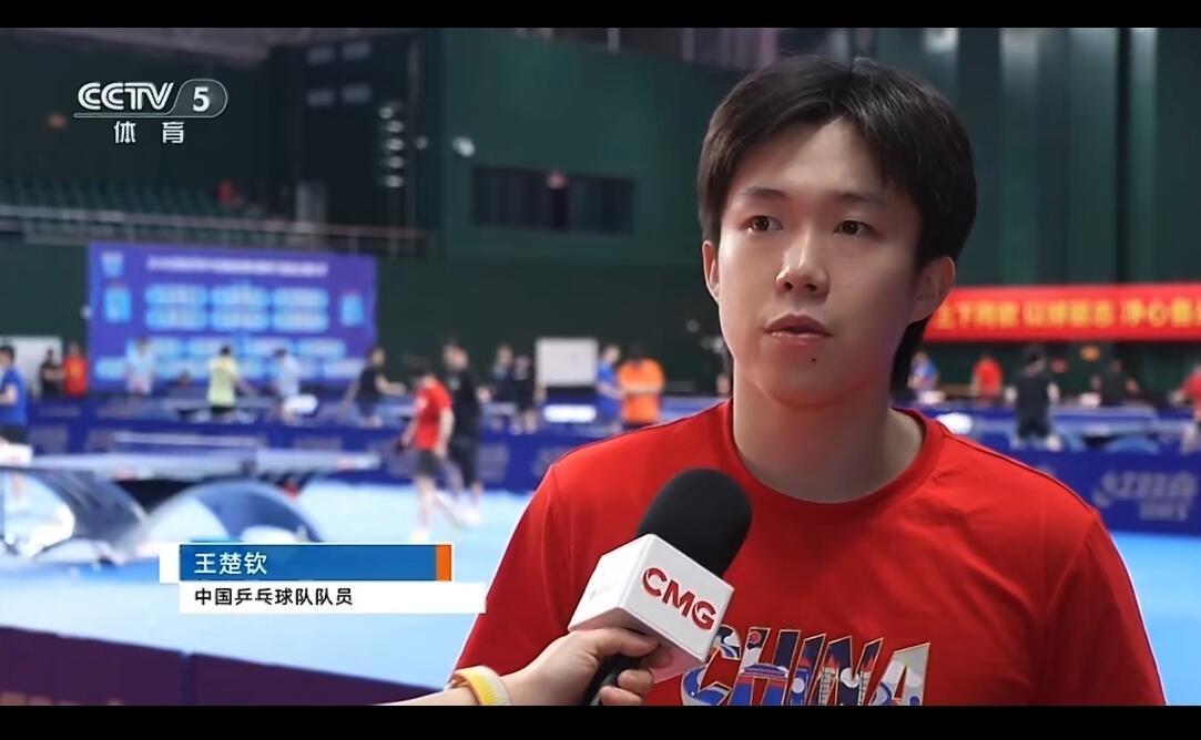 王楚钦在成都做的新发型,穿着红色训练服,水灵灵去的接受采访了!