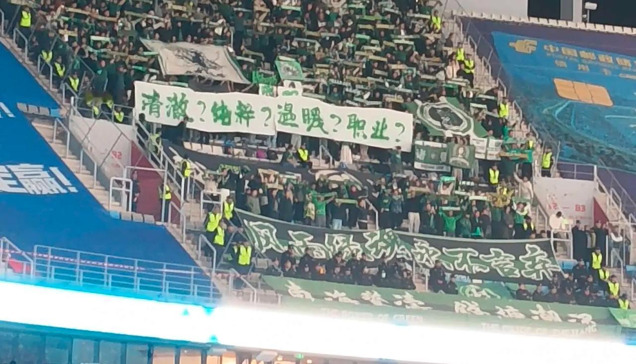 0-3不敌大连英博,浙江球迷应该说是输的心服口服才行。浙江的技战术混乱,两个当家外援托利奇和瓜里拉帕没有在关键时刻拯救球队的能力,球迷打出了“清澈?纯粹?职业?温暖?”反问。