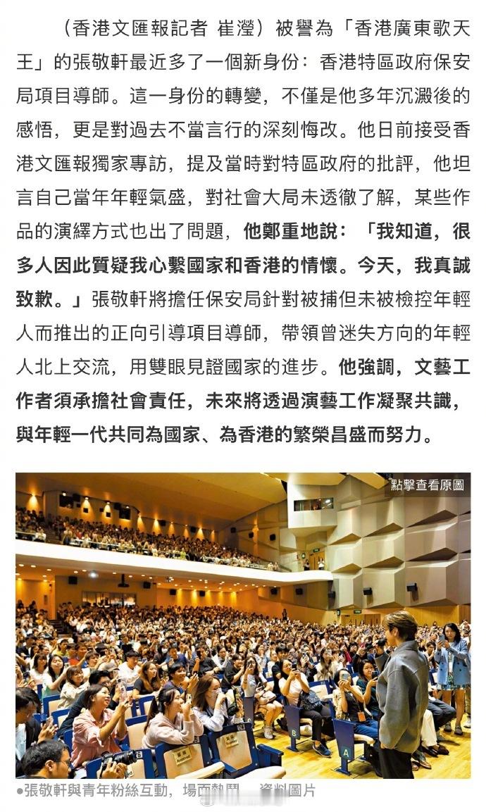 张敬轩有了新的工作发展,两件事:1.对曾经年轻气盛时的一些言论道歉;2.担任导师