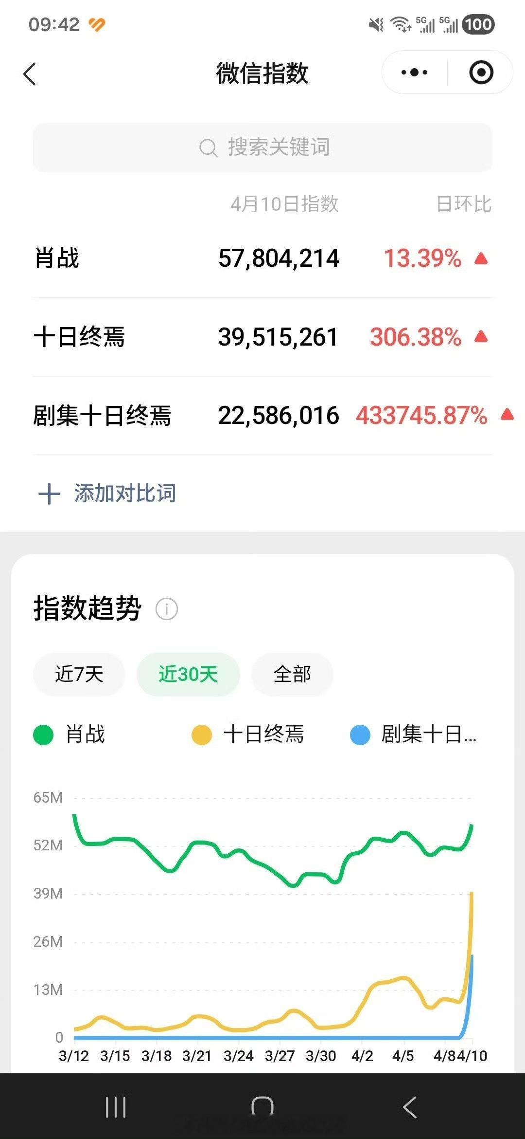 热度炸裂💥,十日终焉昨日官宣开机百值:肖战百指4.6w+,十日终焉百值2.2w+微指:肖战5780w,十日终焉3951w,剧集十日终焉2259w,比很多在播剧集热度都高了无正式预告,腾讯站内历史最高热度1.3万真实万众瞩目啊