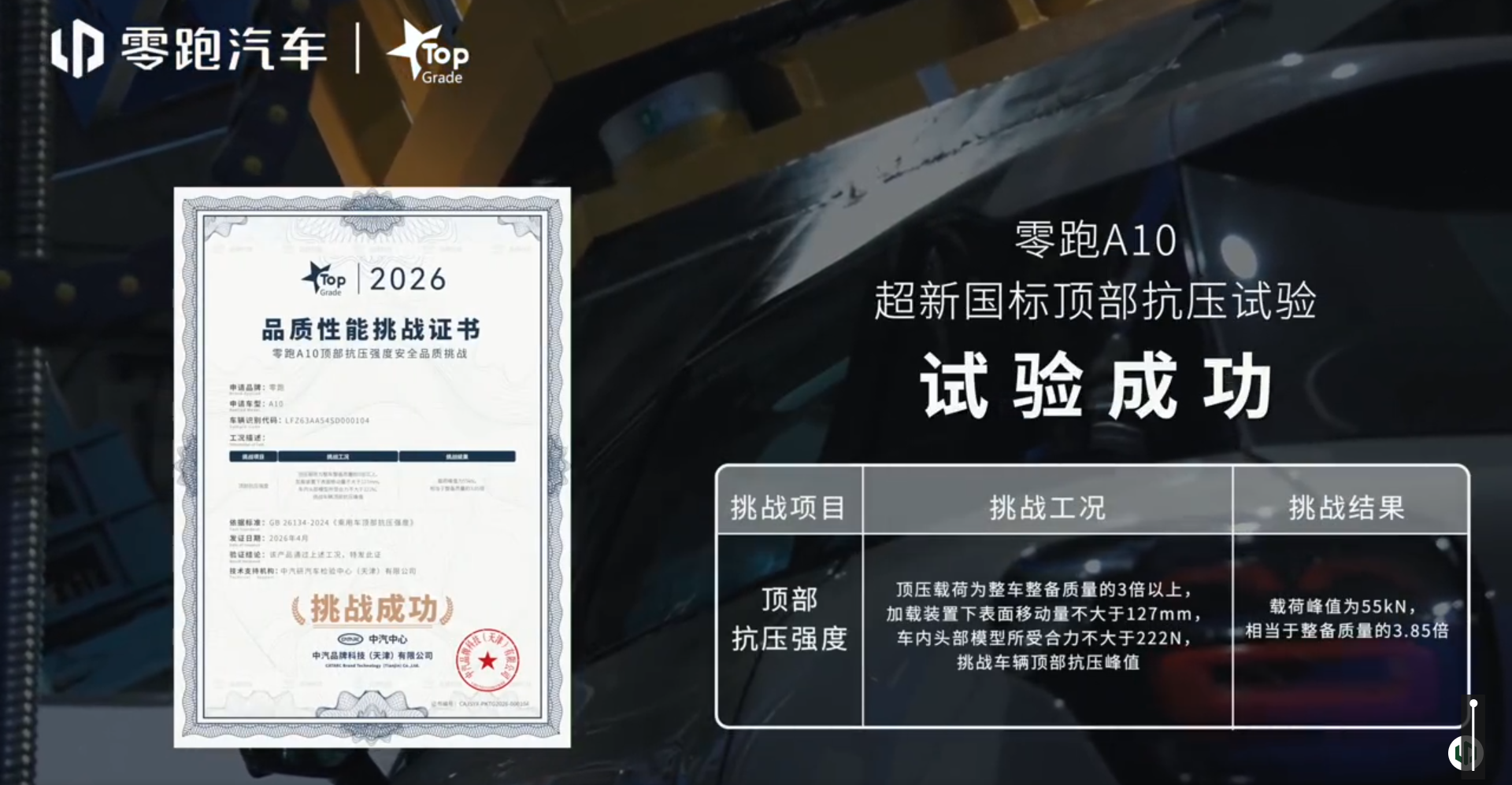 要知道,这种端到端辅助驾驶能力放在友商阵营里,要么选装加价大几万,要么只有顶配旗舰才给。A10大大降低了入手门槛,让普通消费者也能享受到曾经遥不可及的科技体验。安全上同样不含糊,A10在中汽中心顶压测试中扛住了55kN峰值载荷,相当于整备质量3.85倍,用硬核数据证明了“精品车也有大安全”。