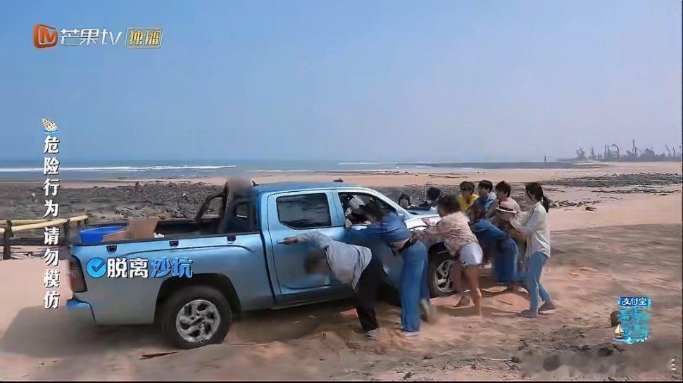 秦岚沈月抬起了2吨的皮卡 谁懂啊!秦岚沈月和大家一起抬起两吨皮卡的瞬间,真的被狠狠戳中。没有刻意煽情,没有明星包袱,一群人遇到问题就一起上,这种齐心协力的团魂太有感染力了。比起精心设计的游戏环节,这种突发又真实的互帮互助,才是慢综艺最动人的地方。亲爱的客栈