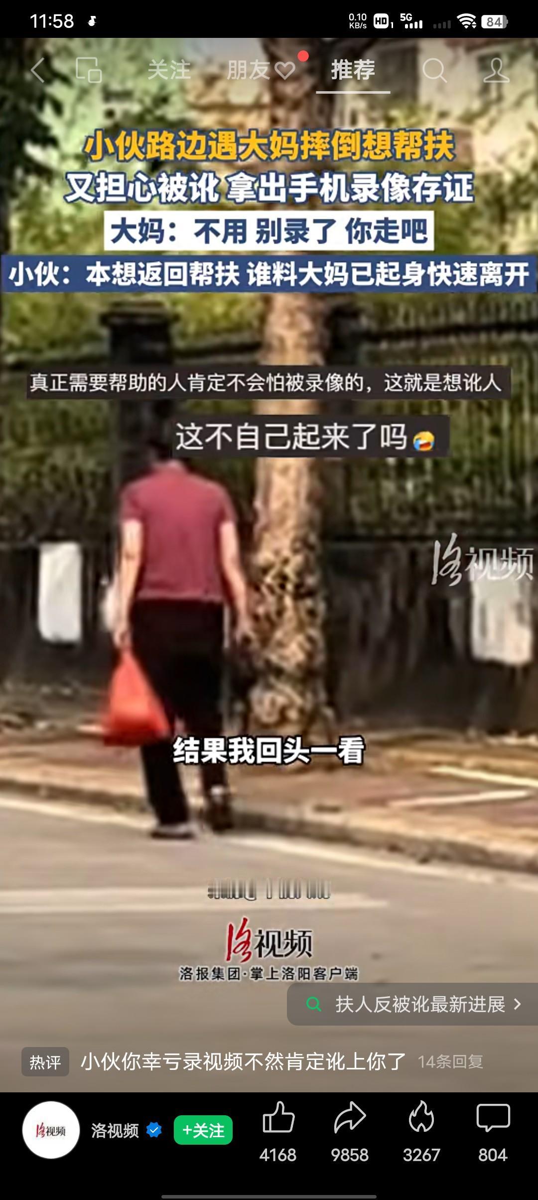 小伙子路边遇大妈摔倒想帮扶,又担心被讹,拿出手机录像存证,大妈:“不用,别录了,你走吧”是小伙子的错吗?