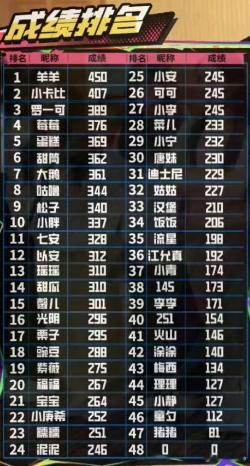团播第一天两个项目(跑步和智力题)的排名情况,刀区双子星蛋糕甜瓜跑步两个人垫底,智力题排名还算靠前!这个排名规则是总共10个项目,每个项目各占10%,另外还有流水排名,在积分一致的情况下再看流水排名。dota2