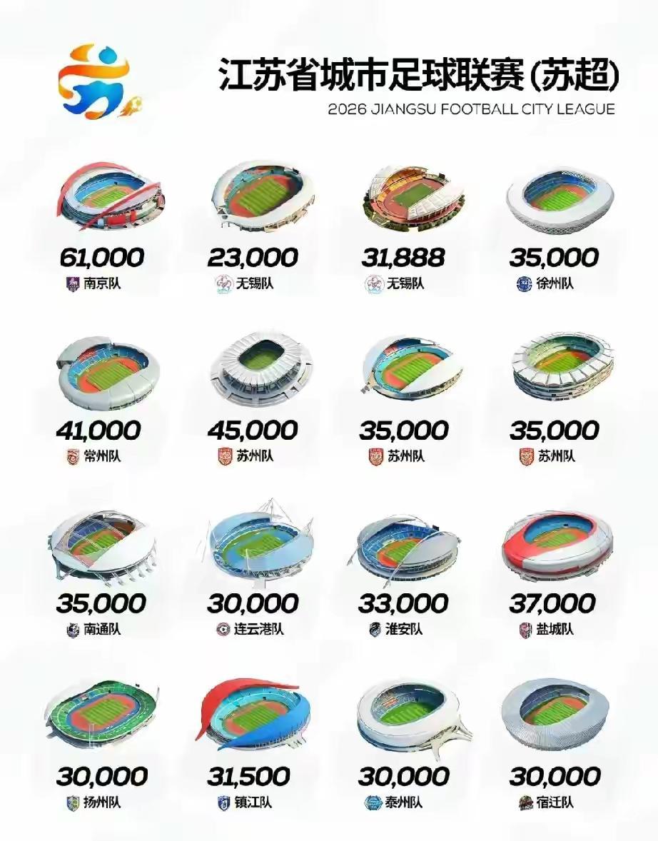 苏超今晚就要开赛了!来,看看各队主场球场,数数有几个?没想到吧,大江苏有这么多大