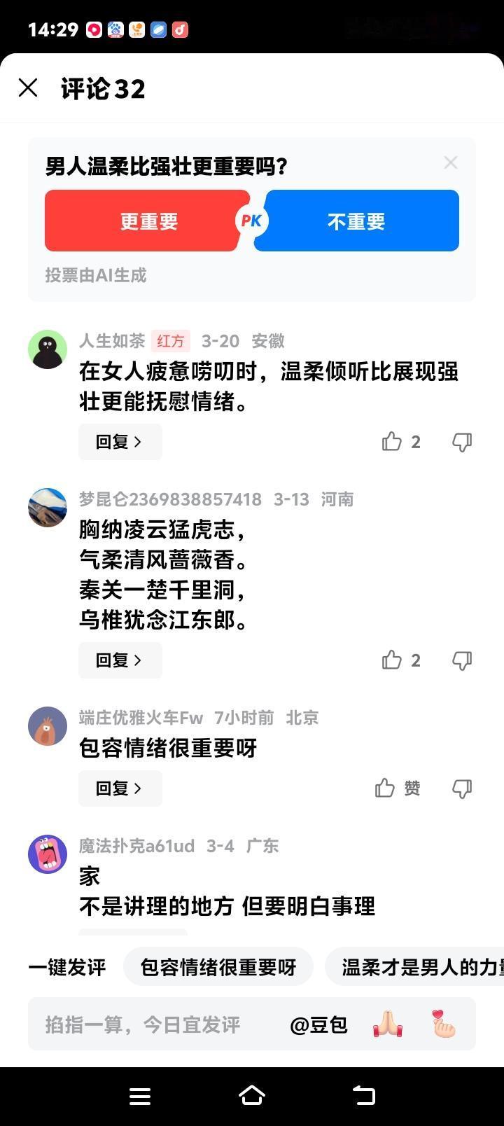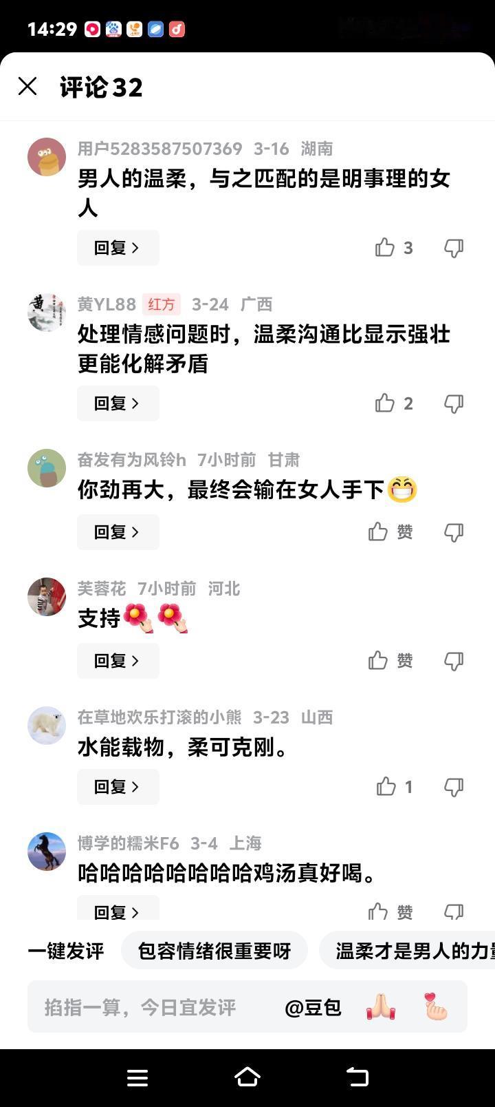 广东一位结婚二十年的阿姨在短视频里笑着说:“我老公从不说爱我,但我咳嗽一声他就去煮梨汤。” 三百万人点赞。女人要的“怕”,是敬畏和心疼——敬畏她的付出,心疼她的坚强。这份敬畏不在礼物价格标签上,而在你记住她生理期、为她留一盏夜灯的细节里。