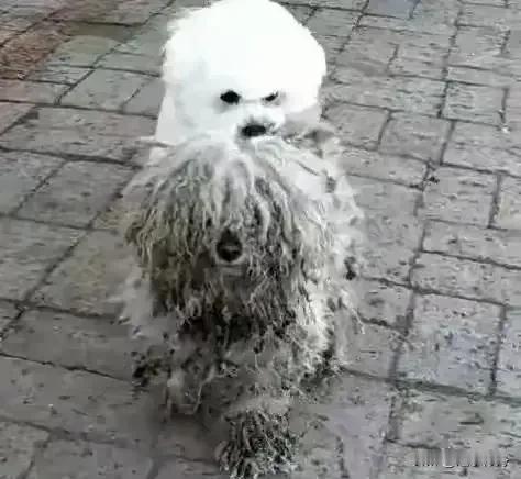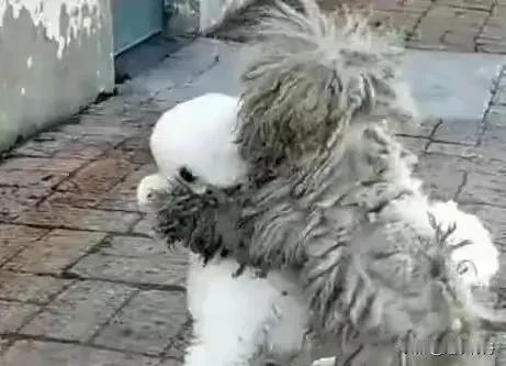 这条狗长期在外面流浪,毛发脏兮兮的。它看到一条比熊在外面玩耍就壮着胆子走过去和它一起玩,比熊也好奇的看着这个同伴。就在这时比熊的主人看到了连忙跑过来抓起流浪狗就摔在地上,可怜的流浪狗只是想和同伴玩耍没想到飞来横祸差点丢了性命,在地上不停抽搐感觉不死也是重伤真是太惨了。