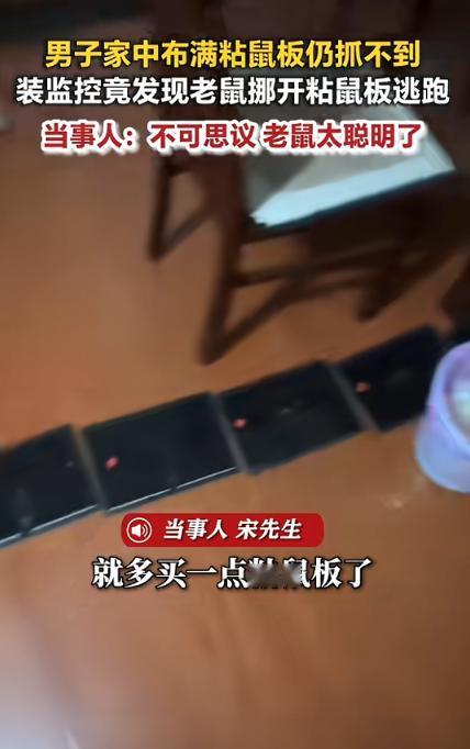 (信息来源:荔枝新闻《男子家中布满粘鼠板仍抓不到装监控竟发现老鼠挪开粘鼠板逃跑 当事人:不可思议 老鼠太聪明了》)
