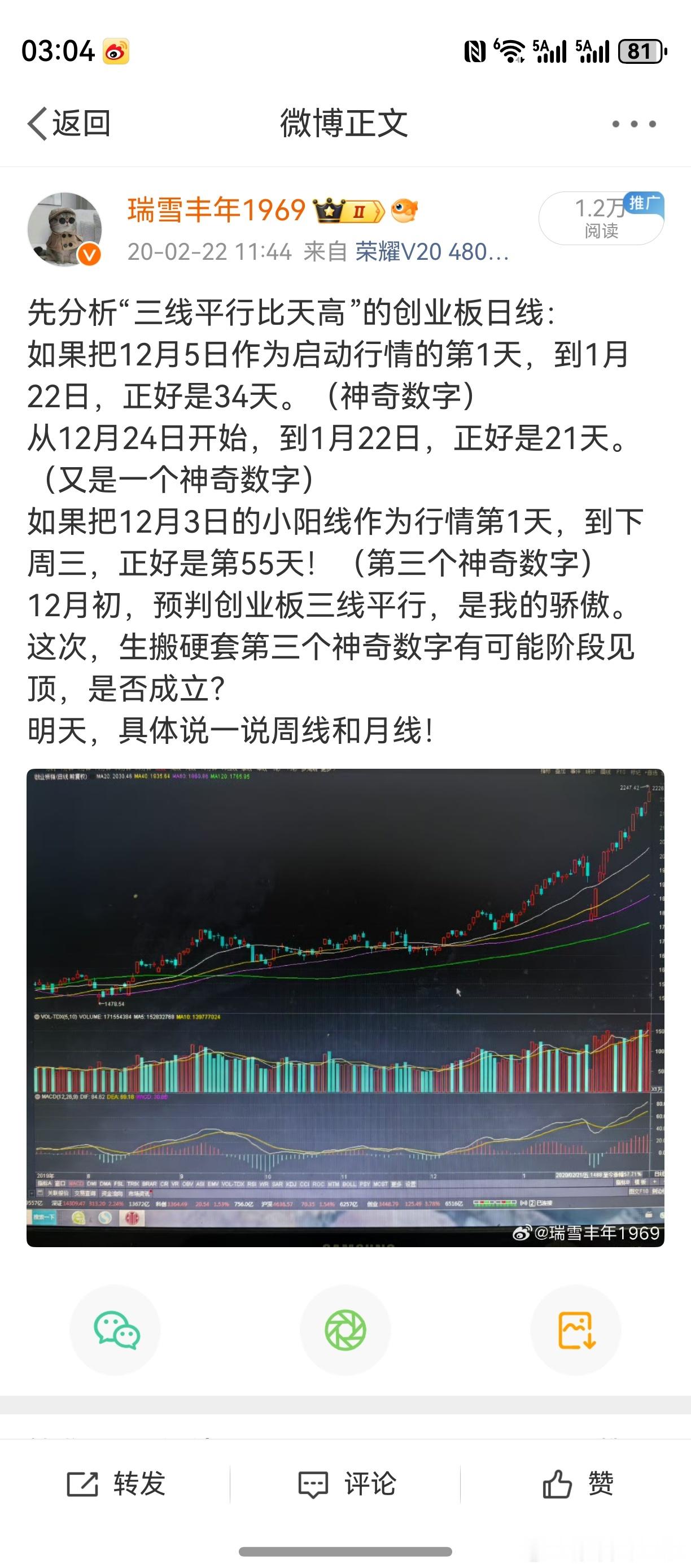 “神奇数字变盘规律”。天下股市第一经典,纳斯达克!纵观其10年走势,留下传奇无数。指数也好,个股也好,只要出现了大机构中线控盘操作的痕迹,一定要重视。个人技术分析探讨,领悟非一朝一夕。请,冷静,沉住气,静下心来,坐在电脑边,动动小手指头,对照第一条微博。先花上半小时,揣摩并领悟一番。仔细想想:我怎么知道2020年2月26日,创业板有可能阶段性见顶?