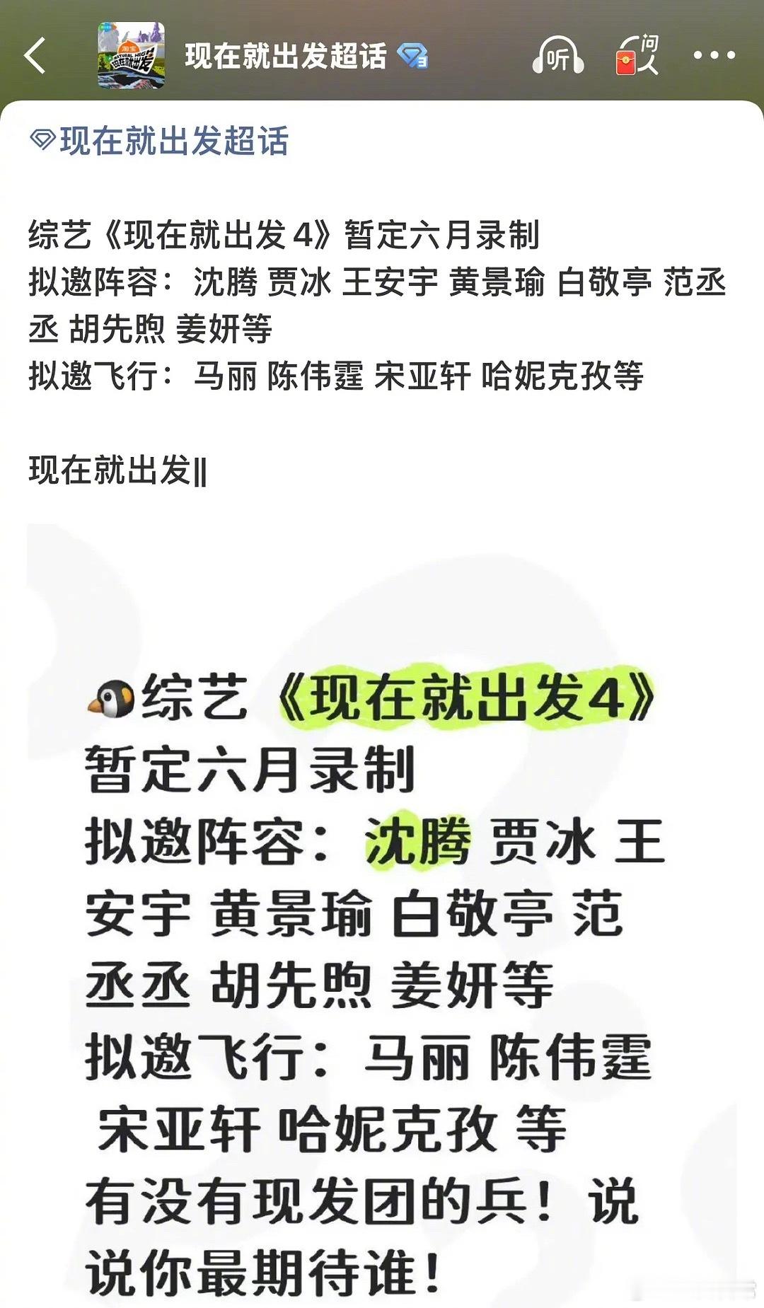 金晨掉饼掉综艺了《现在就出发4》常驻女嘉宾换成姜妍《明川有知夏》女主换成徐若晗