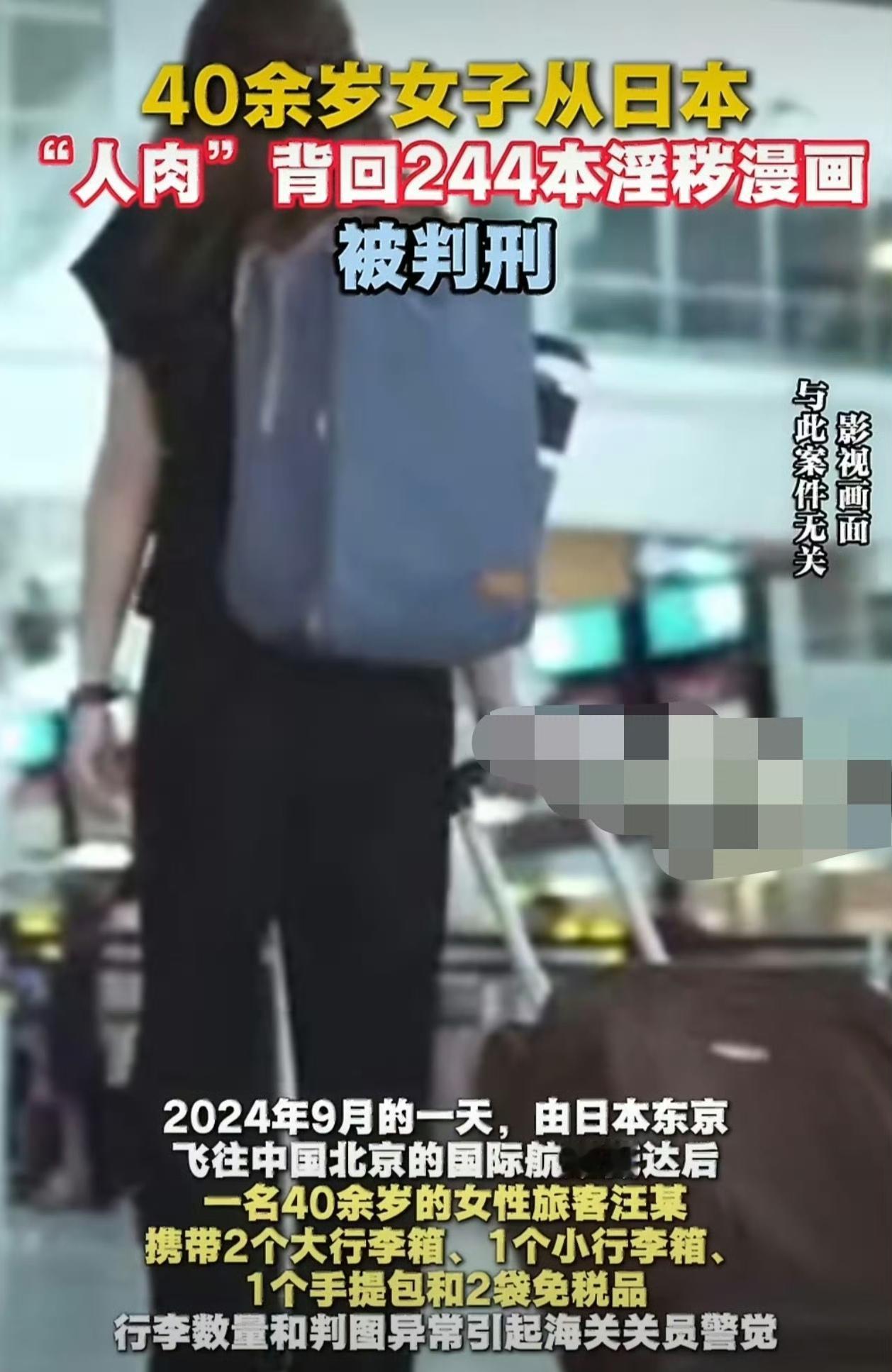 女子从日本带回244本淫秽漫画获刑这事儿,真让人唏嘘。就像之前有个叫李小美的,通过拼团跨境网购2000多本淫秽书刊,被判了三年六个月。这次的汪某,在日本工作还做跨境代购,从日本“人肉”带回244本淫秽漫画。她在机场选无申报通道,结果行李被查,里面全是标注“十八禁”、内容露骨的漫画。最终她因走私淫秽物品罪,被判处有期徒刑一年六个月,缓刑二年,还罚了一万元。这可给大家提了个醒,法律红线不能碰,别为了那点利益,把自己搭进去。
