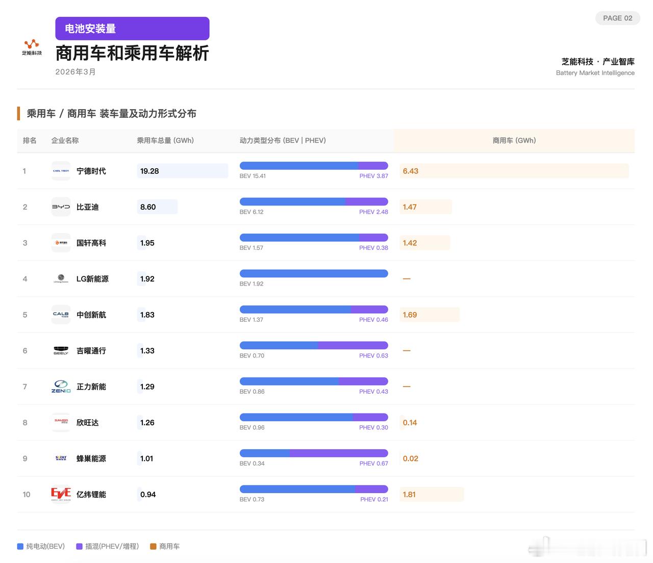 ◎ 宁德时代乘用车装车19.28GWh,其中BEV 15.41GWh、PHEV 3.87GWh;商用车6.43GWh。