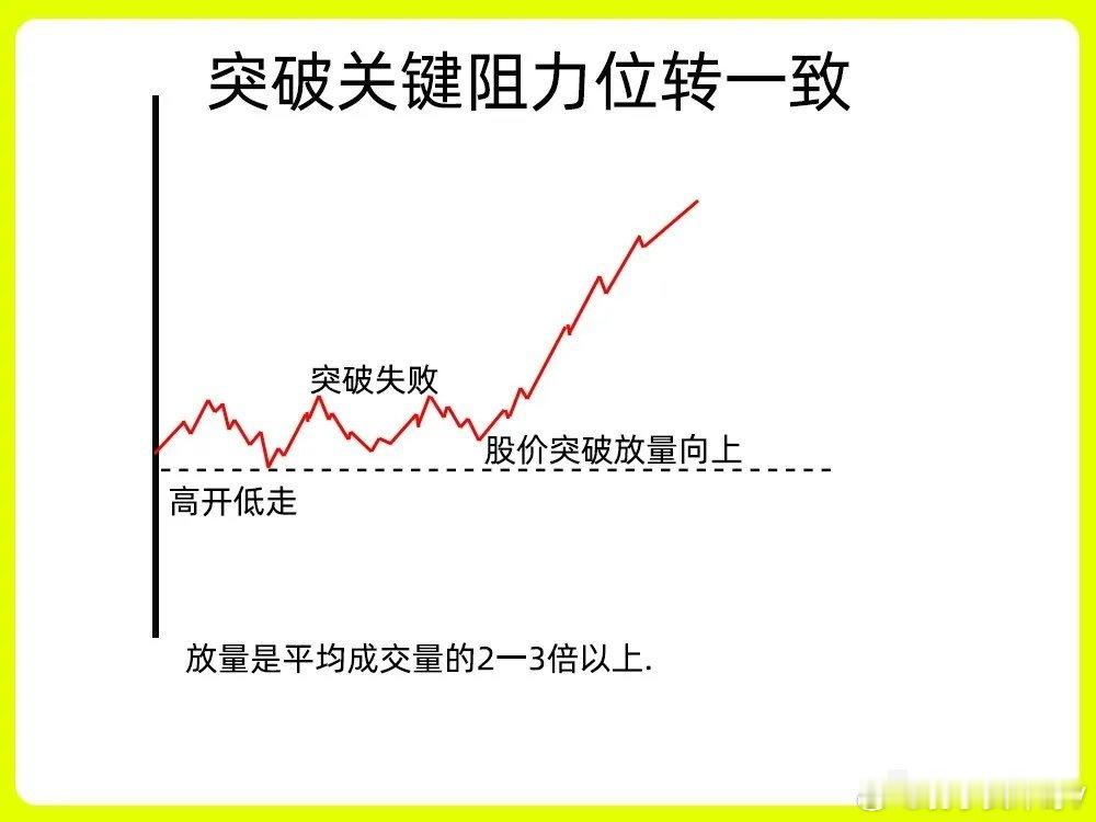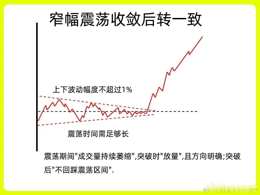 一、窄幅震荡收敛后转一致在分时图里,股价一般会走出收敛三角形或是矩形,在分歧阶段,股价出现上下震荡的走势,从原来宽幅震荡,慢慢变成窄幅震荡,波动空间越来越小,当然成交量也从开始放量到逐步缩量的一个过程,放量代表换手,筹码交换比较激烈,到最后的缩量,代表市场抛压开始变弱,没有太多的筹码换手。随着股价收敛,最后出现放量,开始突破震荡的这个平台,形成市场一致性的情绪,说明主力洗盘结束。二、突破关键阻力位转一致股价一直在股价压力位下方运行,一般是前期的高点,平台的上沿或是高开的开盘价位置。股价多次试探压力位,在分时图里就会出现股价冲高回落,反复试探的一个过程,这就是市场分歧。随后股价突破压力位,并且能站稳压力位,同时成交量一般会很大,因为市场情绪处于一致状态,抛压很弱。三、回踩支撑位确认转一致股价早盘开盘以后,股价出现放量冲高,随后开始回调,均价线和开盘价就是一个关键的位置,股价在回调过程里,成交量出现缩量,回踩均价线,开始止跌企稳。说明支撑位有很强力度。随后出现放量上涨,这是我们最为常见的主力洗盘手法。整个趋势比较明显,