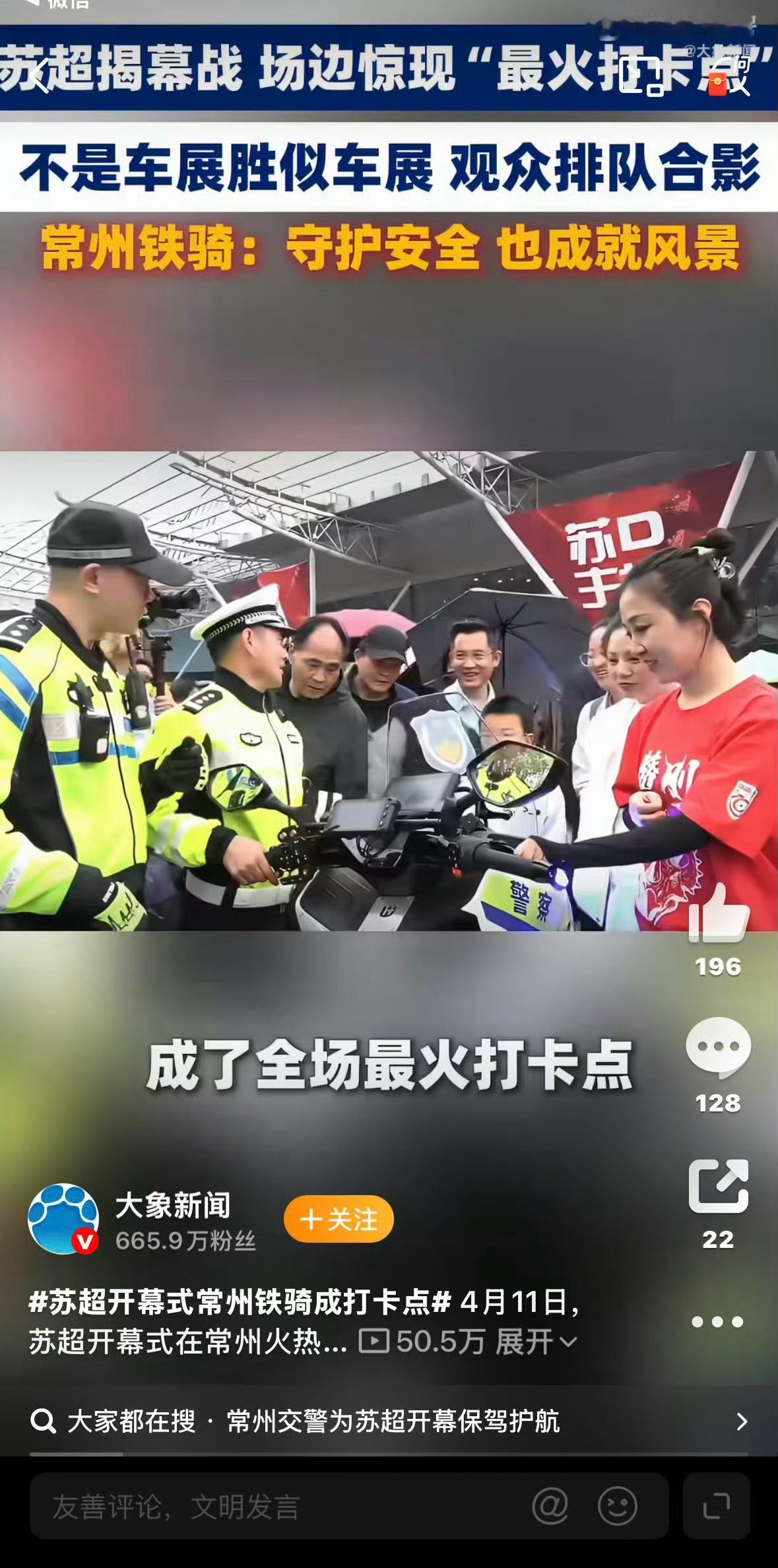 苏超开幕式常州铁骑成打卡点第一次在足球场边见到交警骑着电摩巡逻,安静又灵活,散场疏导交通时比传统燃油车便捷太多,为常州铁骑点赞!常州交警为苏超开幕保驾护航