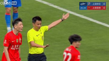 果不其然!比赛进行到第27分钟,在上海海港球员杨希与申花球员的争抢皮球过程中,近在咫尺的边裁给出了清晰的旗语,杨希将皮球碰出界外,上海申花队后场边线球,杨希抱怨边裁,武磊和替补席上另一位上港球员也跳了出来,冲着边裁比比划划指手画脚[震惊]