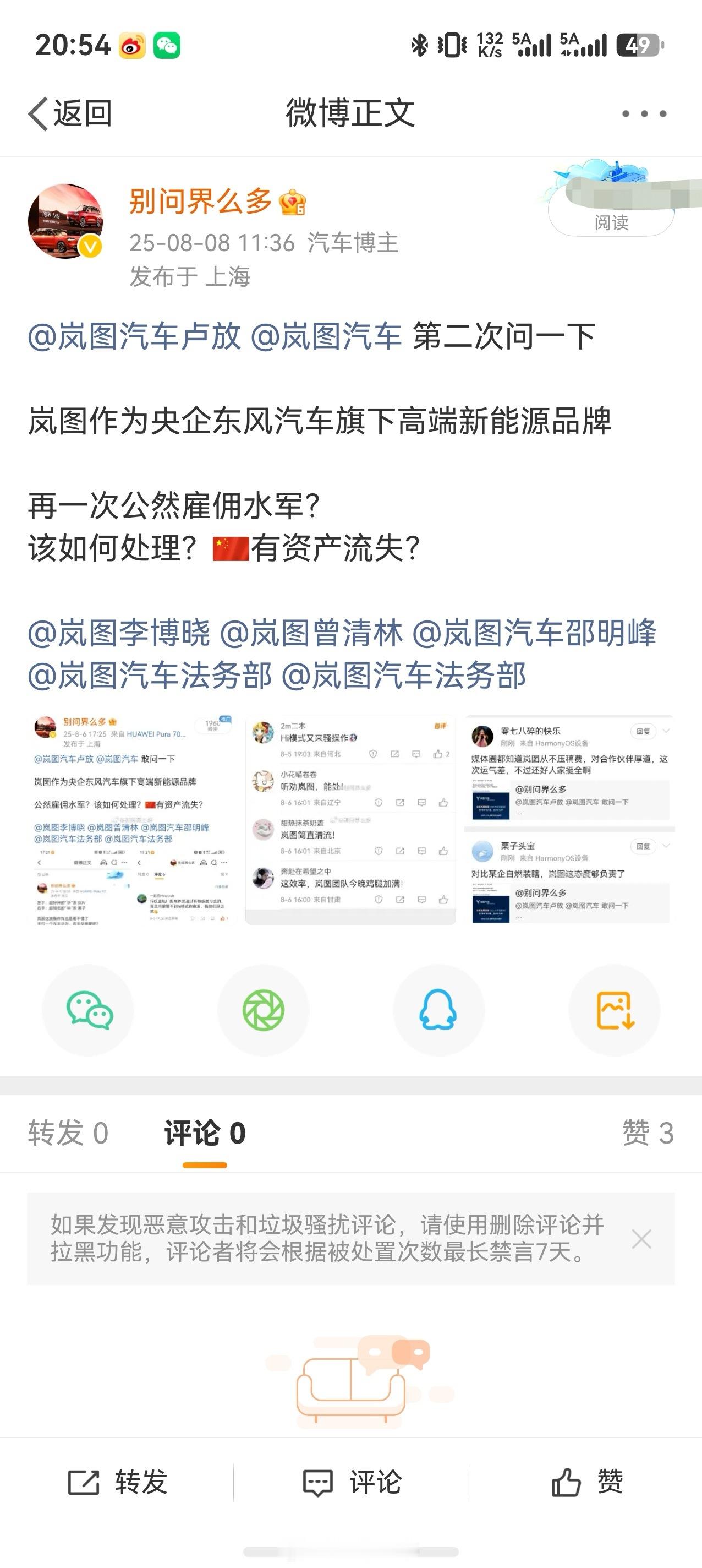 之前在 问界M8 问界M9 享界S9T 上市期间BlueToo汽车 曾部署给销售一个工作项目要求销售在鸿蒙智行产品评论区发;“我选知音/追光L/泰山” 类似的内容……