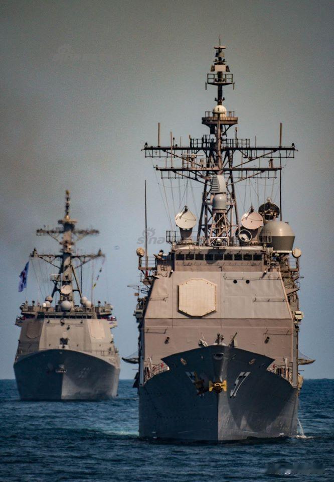 阿利·伯克级导弹驱逐舰满载排水量9200吨,装备96单元MK-41垂发,安装SPY-1宙斯盾雷达。提康德罗加级导弹巡洋舰满载排水量9600吨,装备122单元MK-41垂发,装备SPY-1A/B宙斯盾雷达。