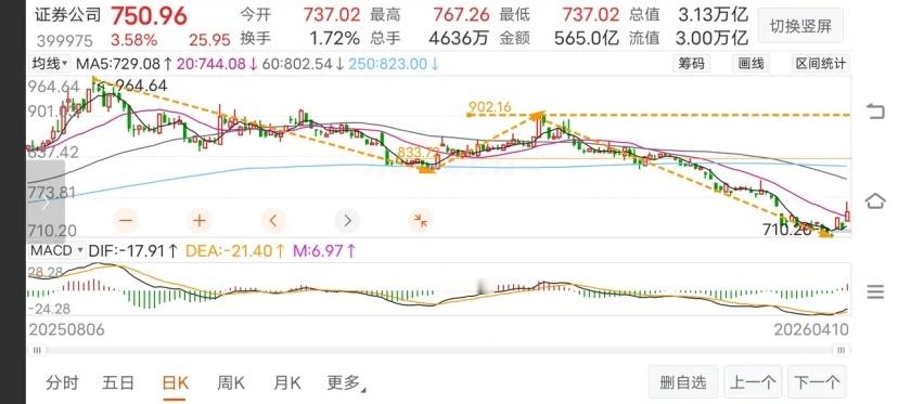 本周《证券》收涨5.07%,资金流入31.55亿。一阳吞两阴,报收5均上方,明显放量上涨,虽然收了根上影线,但显然止跌企稳迹象。下周看能不能收出周线底分型,完成类2买构建。