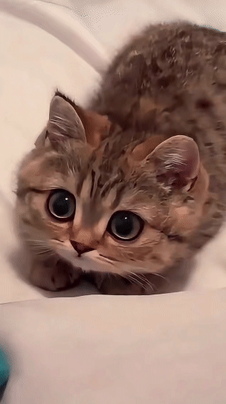 救命!这猫的眼睛比我的脸还大! 刷到这只小狸花直接被萌到心巴上! 小家伙躲