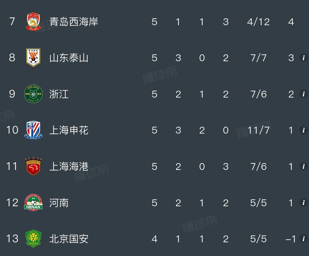 开赛5轮不败,如果上海申花没扣分,现在妥妥的联赛第一,直接奔着冠军去了。