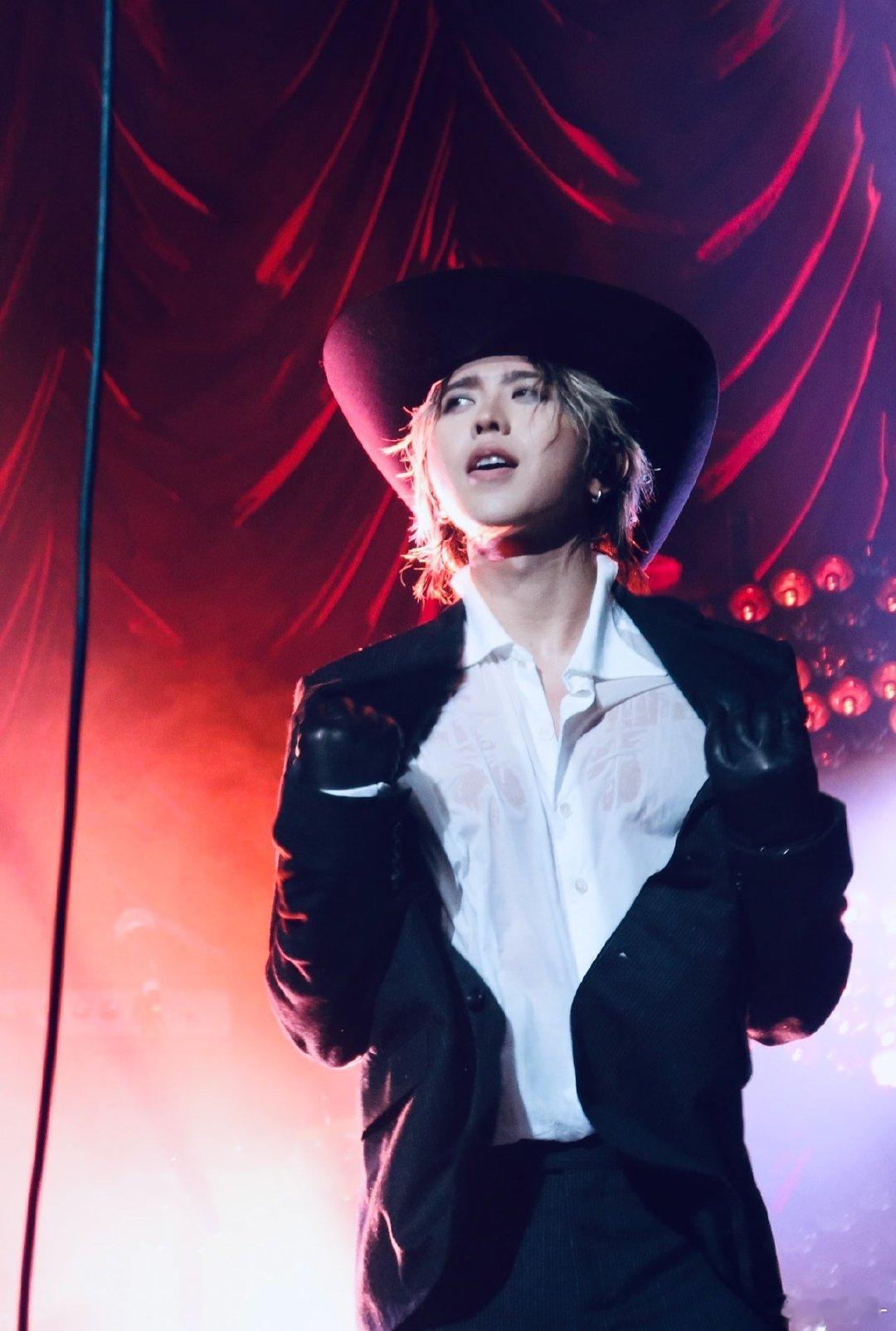 蔡徐坤的衬衫湿透了从开场到结束,一首接一首的唱跳,衬衫从干爽到被汗水浸透,全程没