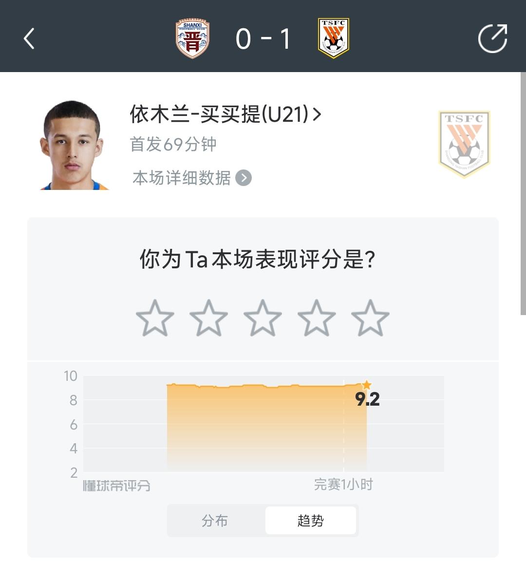 在本轮中乙联赛,山东泰山B队1-0山西崇德的比赛中,依木兰在比赛第69分钟时,因伤被担架抬下场,这也让许多关注他的球迷揪心不已。不过好在赛后他已经能看到他可以单独活动,大概率是一些小伤。