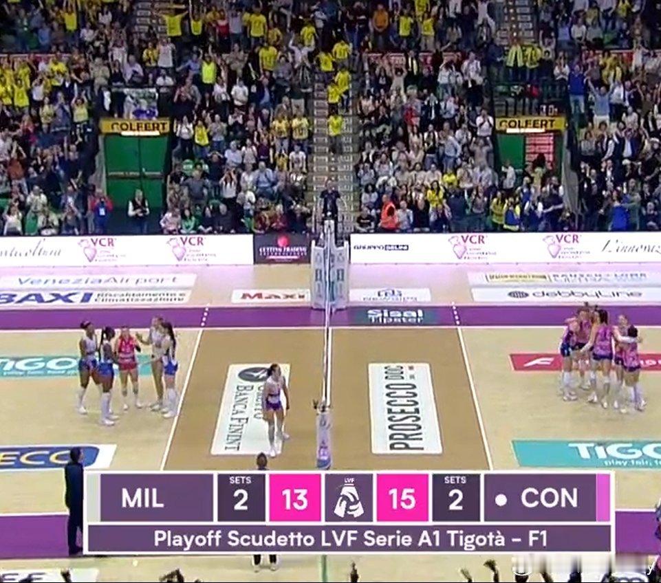 科内利亚诺25-20拿下首局!!意甲女排联赛决赛首回合正在进行中,科内利亚诺主