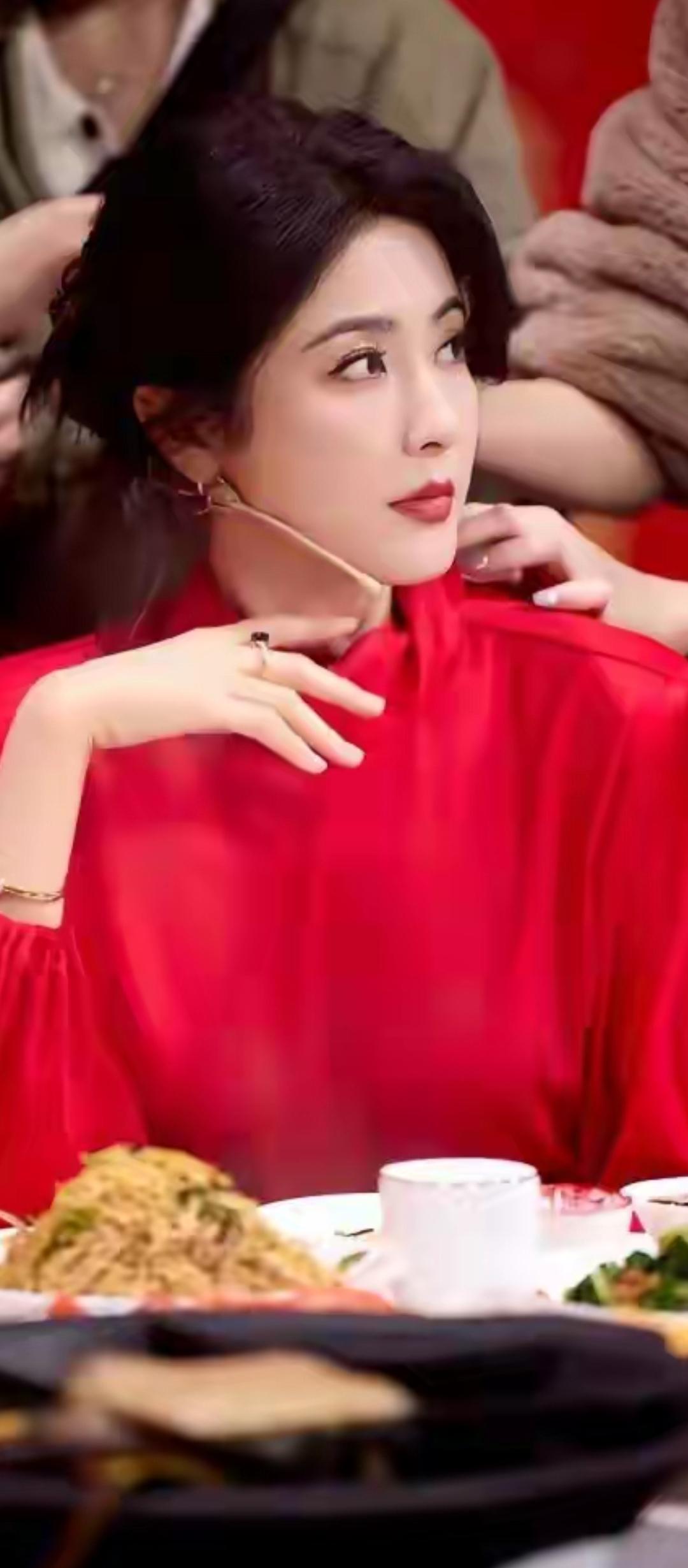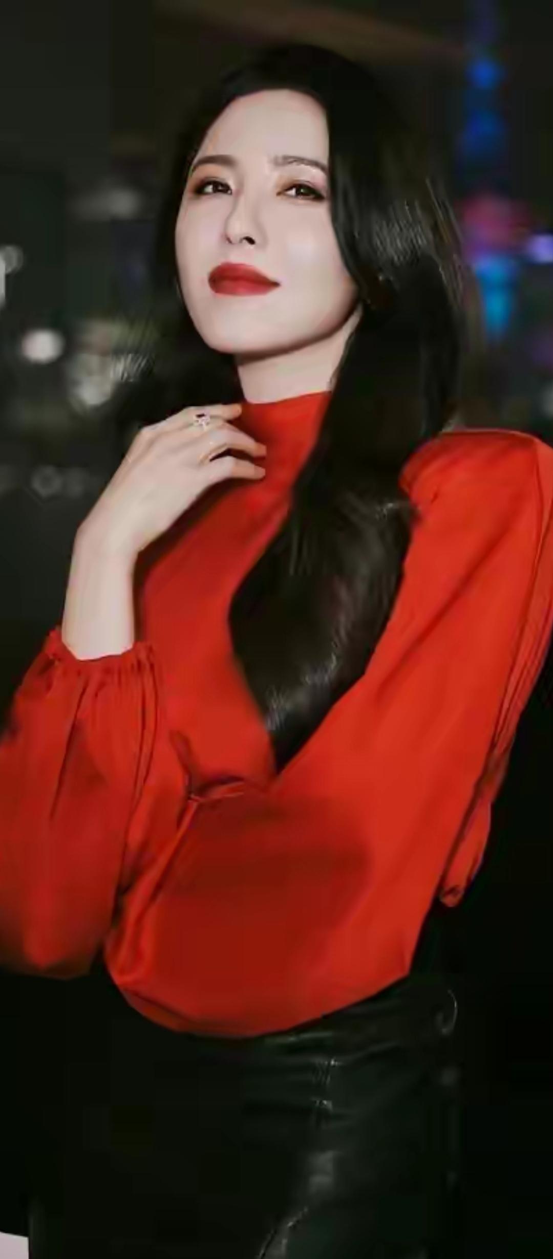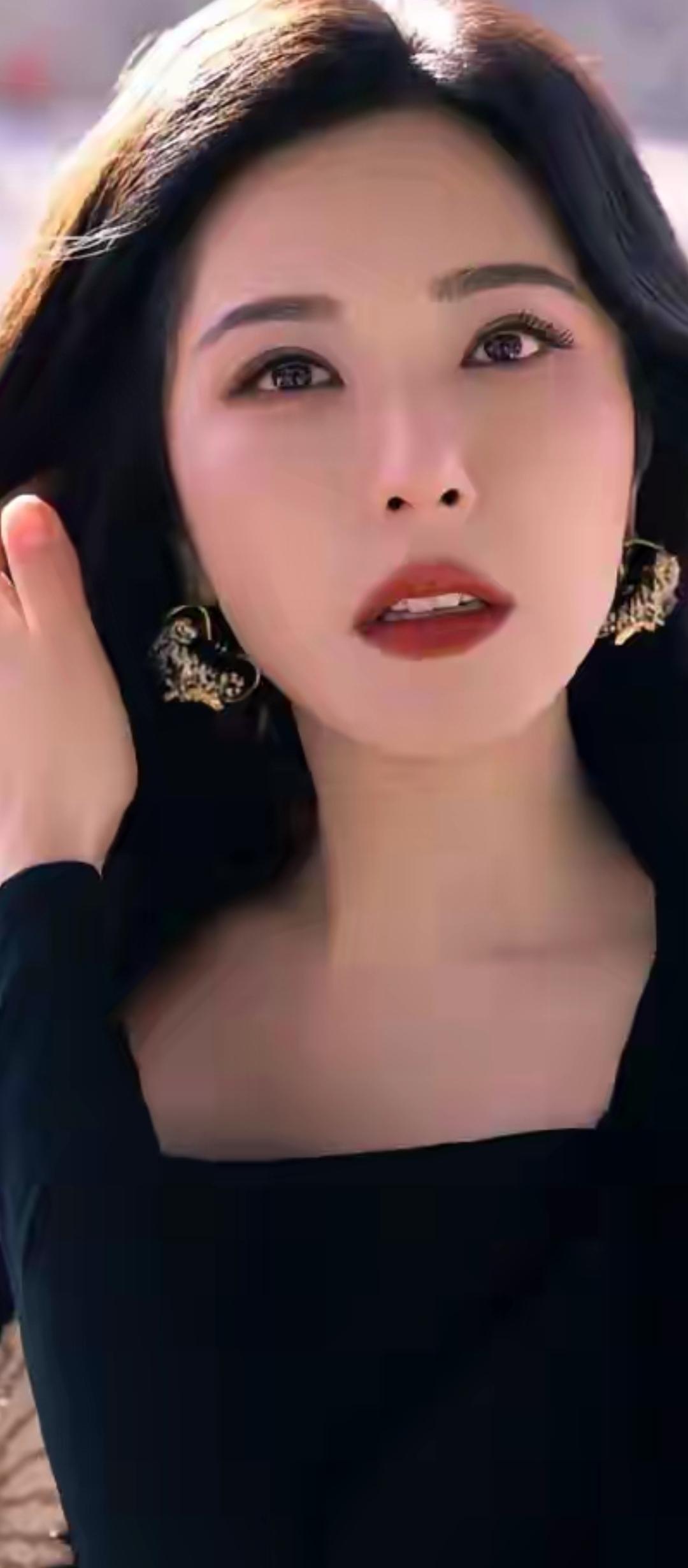 温柔眼波流转,黑发如瀑,唇红如樱,尽显东方古典美。