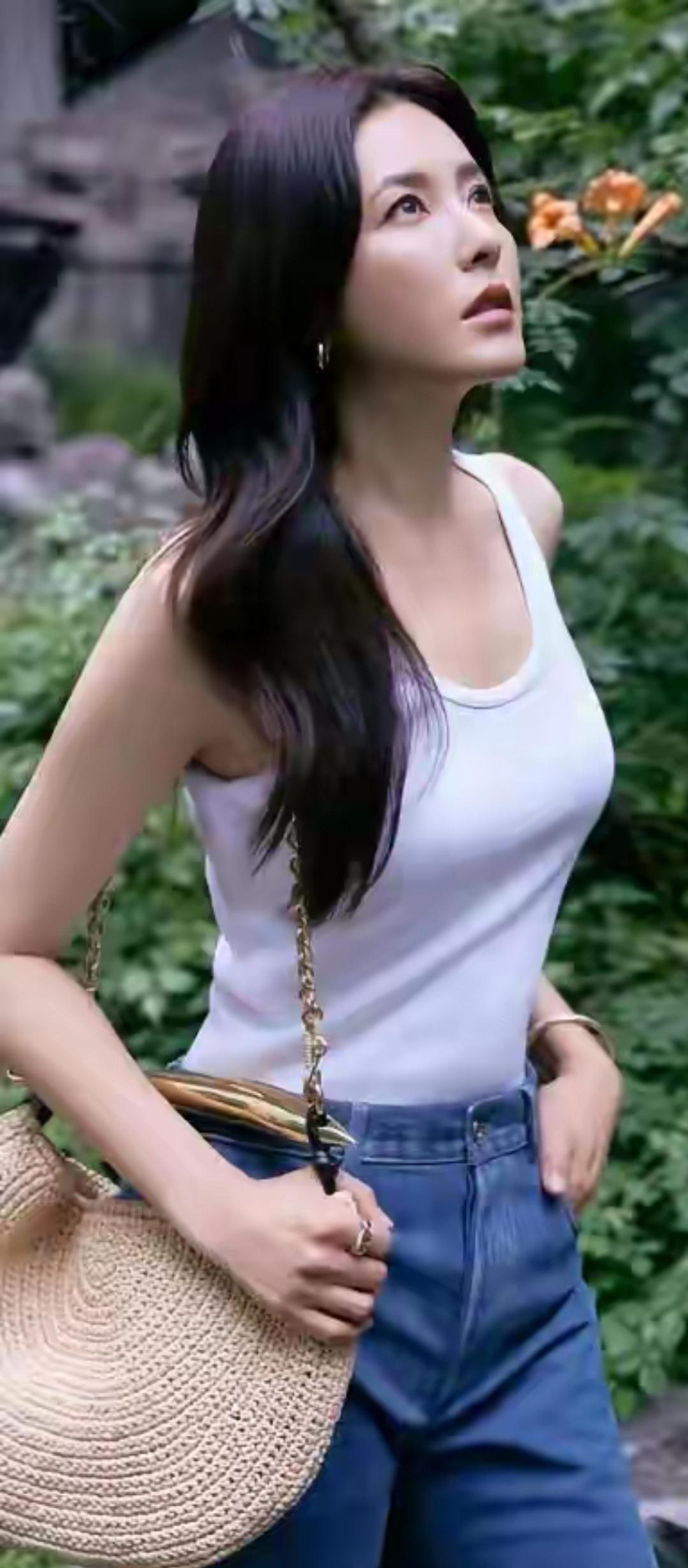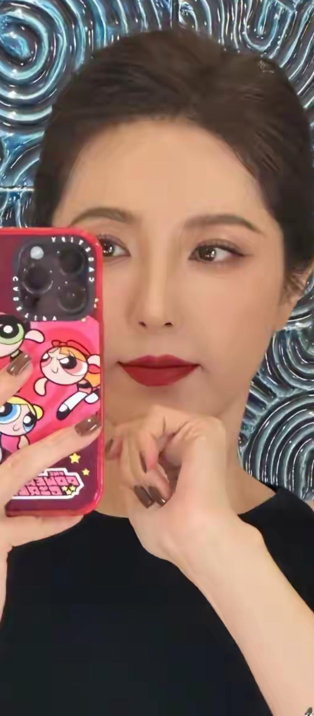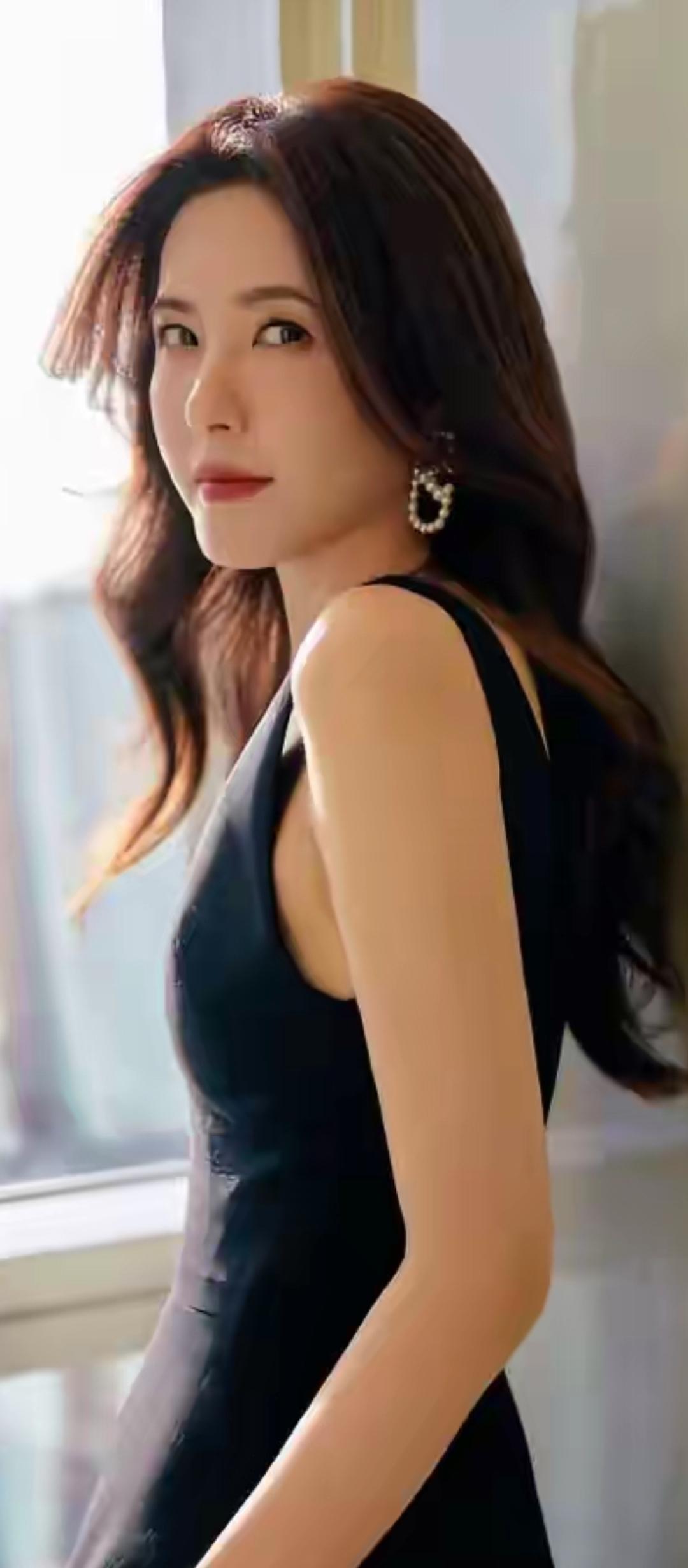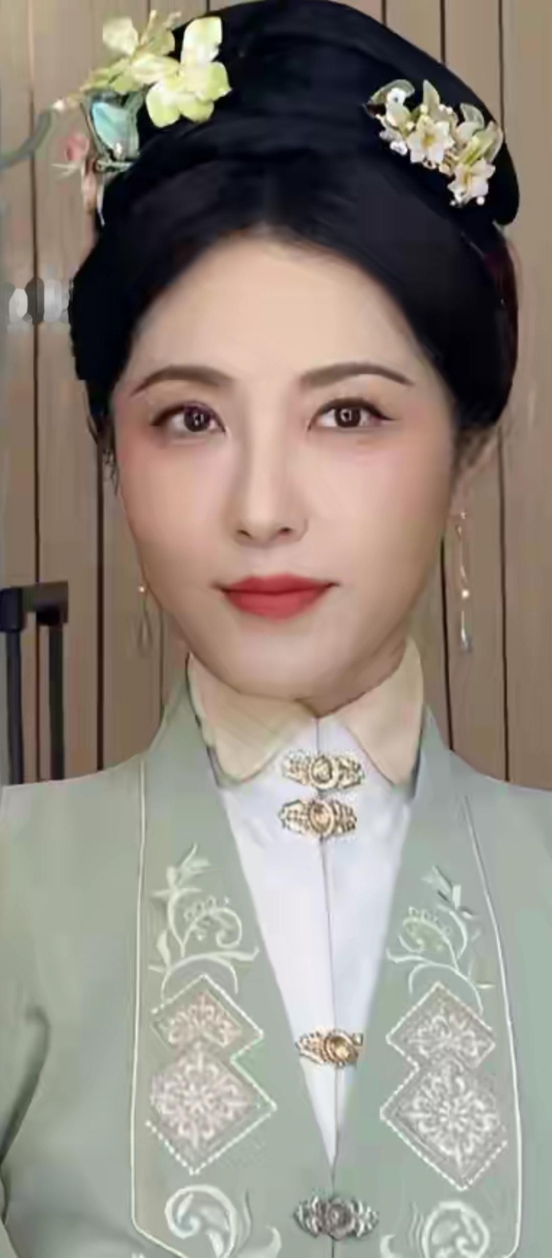 温柔眼波流转,黑发如瀑,唇红如樱,尽显东方古典美。