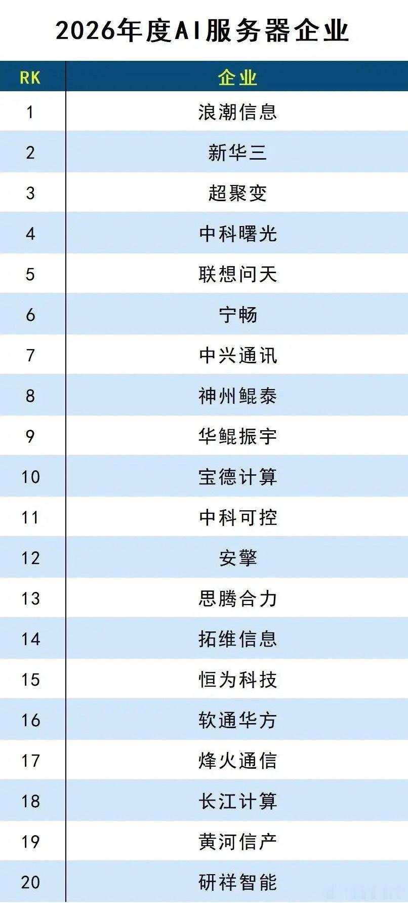 A股 国产AI算力全产业链崛起!2026三大核心榜单见证中国算力硬实力!AI算力,就是数字经济时代的“新基建”,更是大国科技竞争的核心战场!2026年国产AI算力三大核心榜单正式发布,完整覆盖AI芯片、AI算力基础设施、AI服务器全产业链:✅ AI芯片赛道:华为昇腾稳居第一,海光信息、寒武纪、昆仑芯等30家企业集体突围,用自研架构打破海外垄断;✅ AI算力全赛道:华为昇腾、海光信息、阿里云领跑TOP30,覆盖芯片、云计算、IDC、算力租赁、光模块等全环节;✅ AI服务器赛道:浪潮信息稳坐头把交椅,新华三、超聚变、中科曙光等20家企业筑牢算力硬件底座。