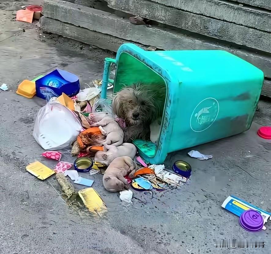小狗一家被人打包丢到了垃圾桶,谁能救救它们?它生了一窝小狗后主人觉得太麻烦就把它