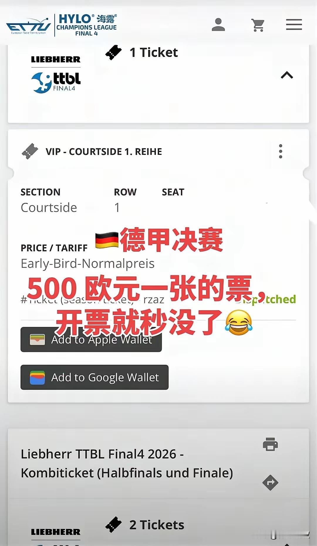 德甲决赛门票一秒抢空,