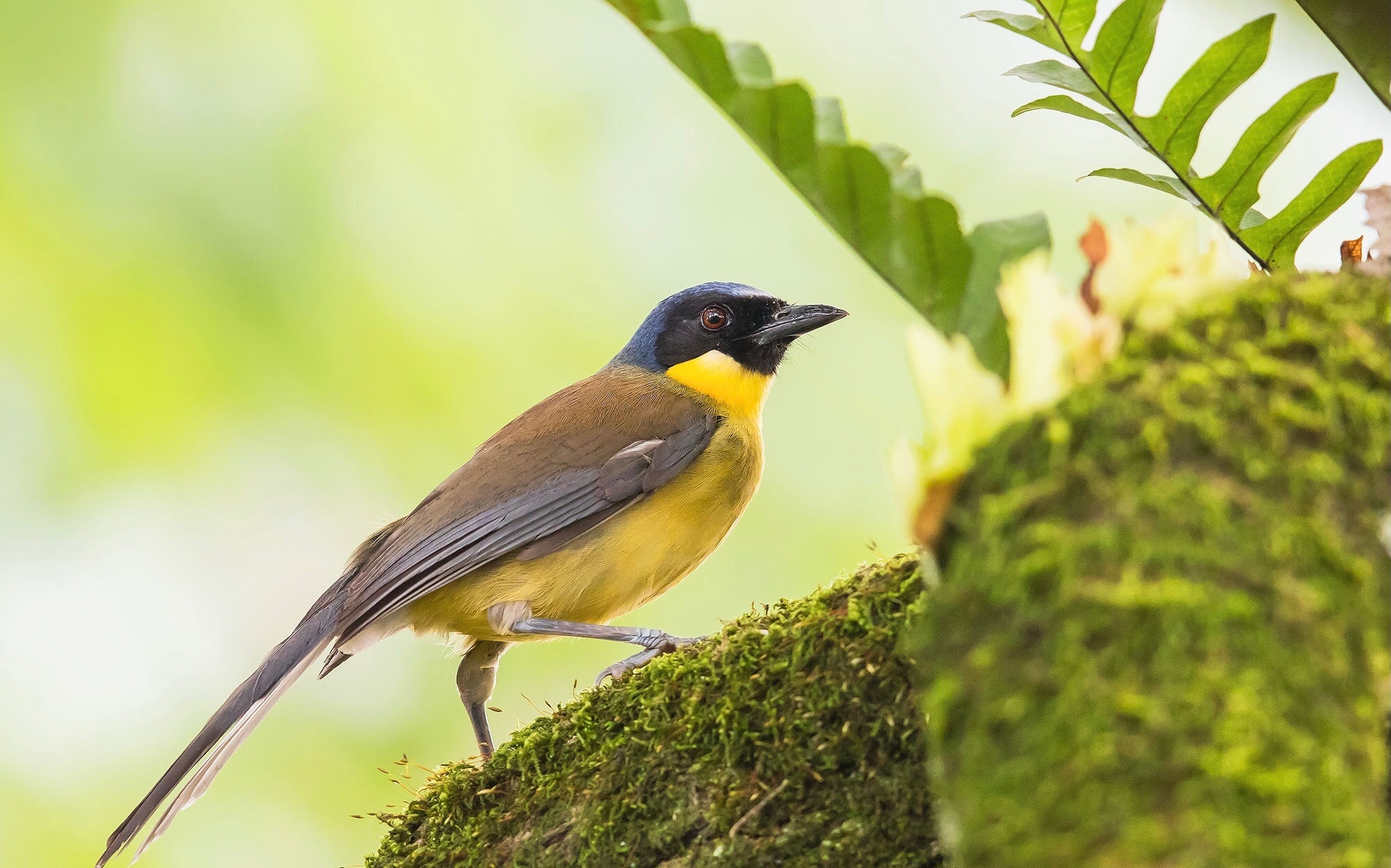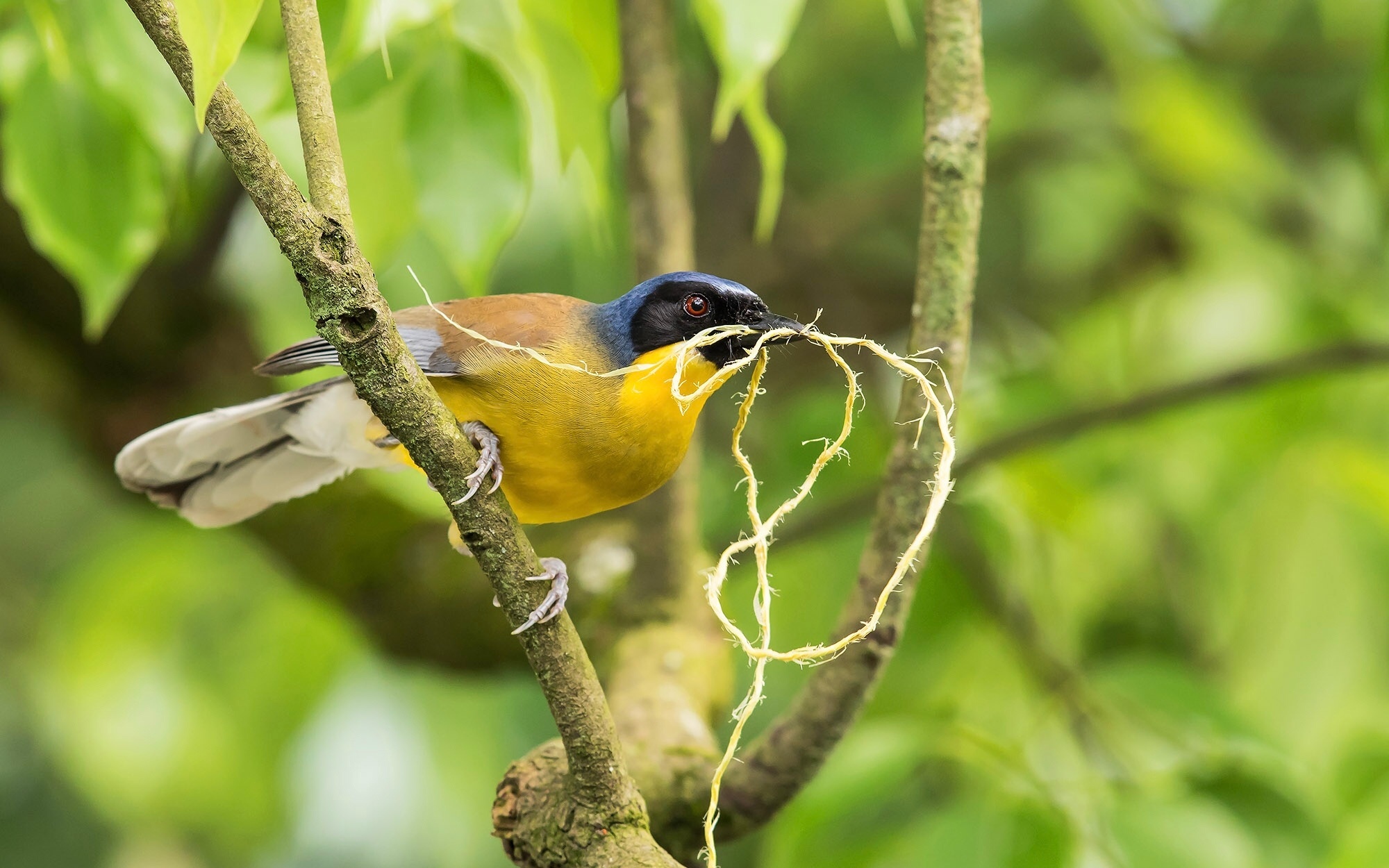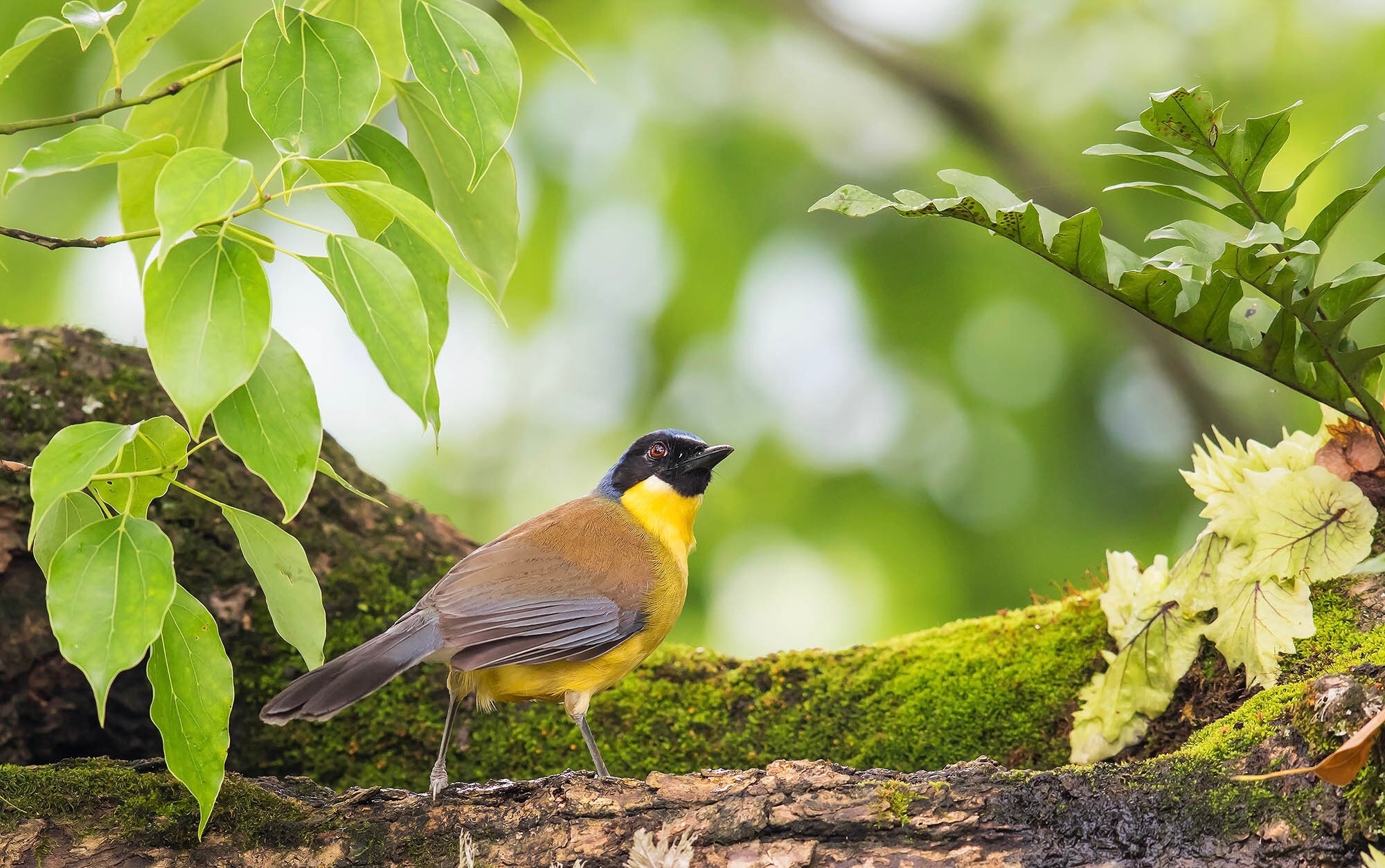 这小家伙顶着黑帽子、穿着黄肚皮,简直是森林里的显眼包~