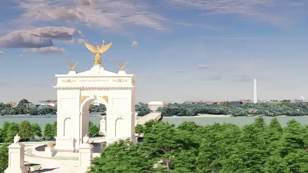 据悉,这座计划在首都华盛顿建造的凯旋门,高度达76.2米。其高度将超过林肯纪念碑,外界指此举是特朗普在为自己立“功德碑”。